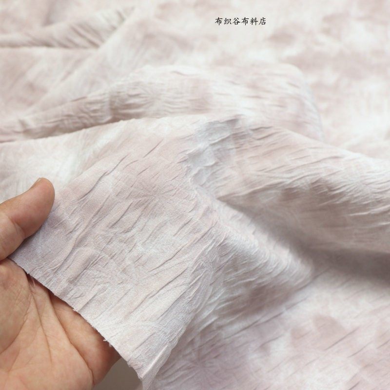 新中式扎染风藕粉泡泡肌理褶皱混纺布料夏季衬衣服装时装裙子面料