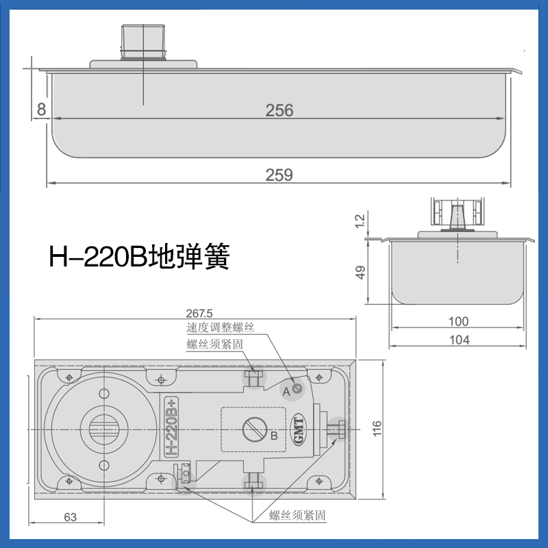 GMT地弹簧地簧弹H220B承重100KG门宽900mm以内玻璃门配件地弹璜