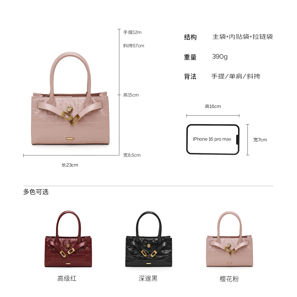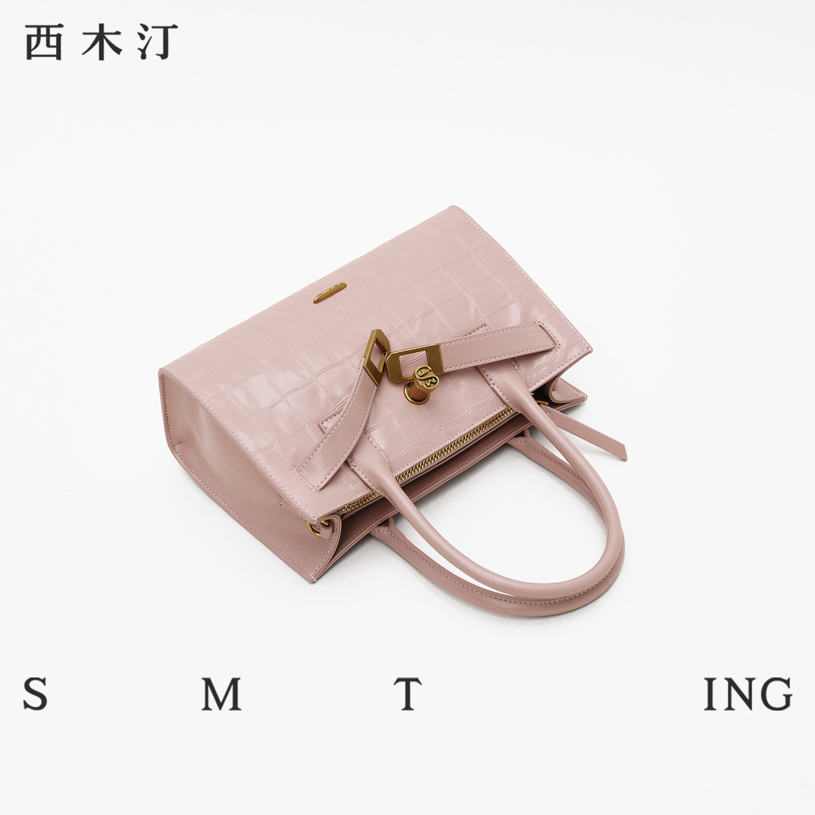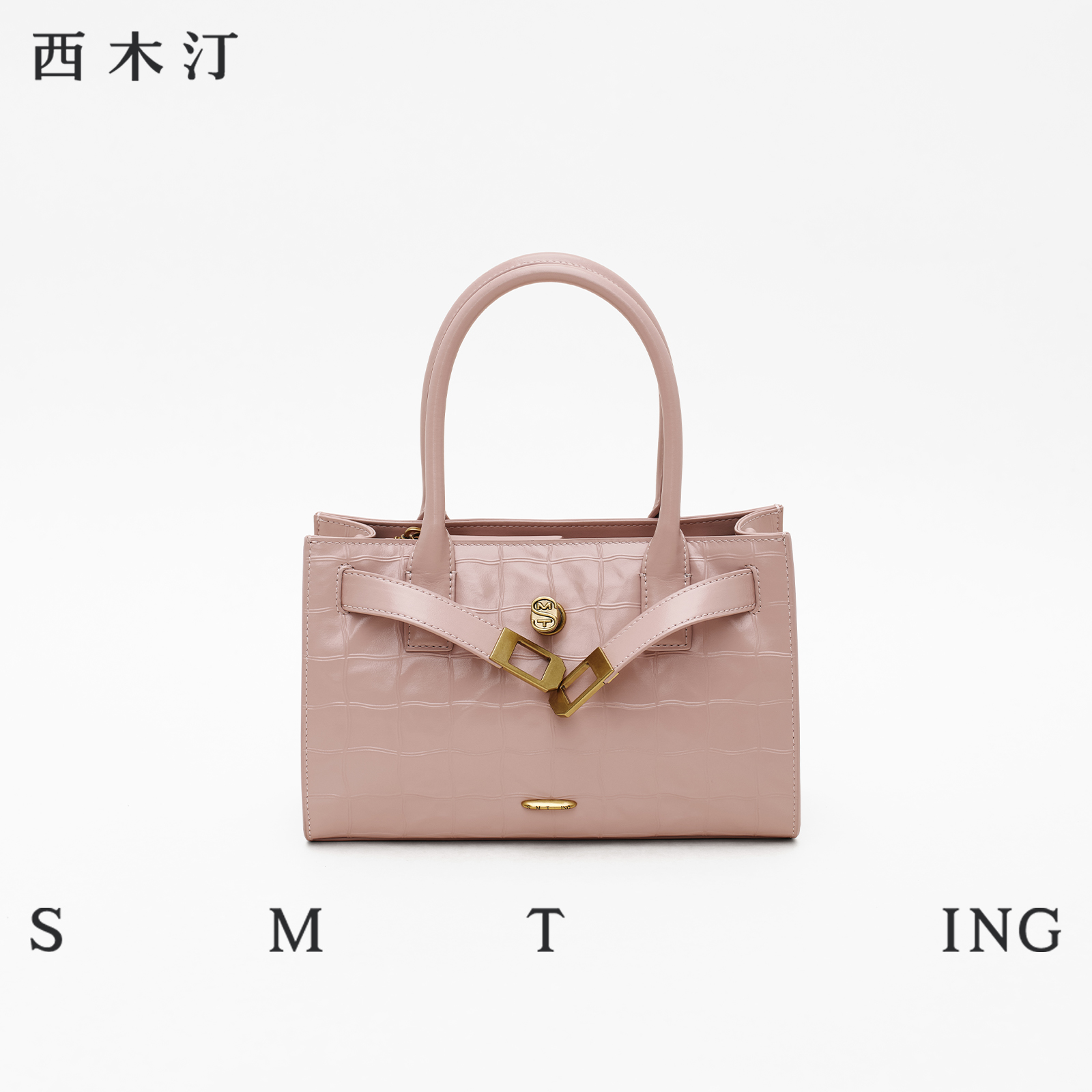 【圣诞礼物】西木汀 静默 头层牛皮粉色凯莉包新款女手提包斜挎包