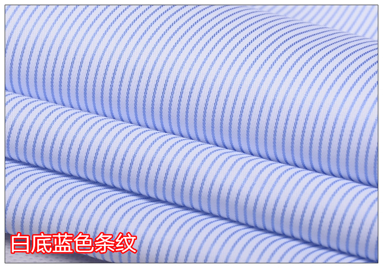 白底蓝条纹衬衫男士长袖商务正装银行工作服男加肥加大码衬衣免烫