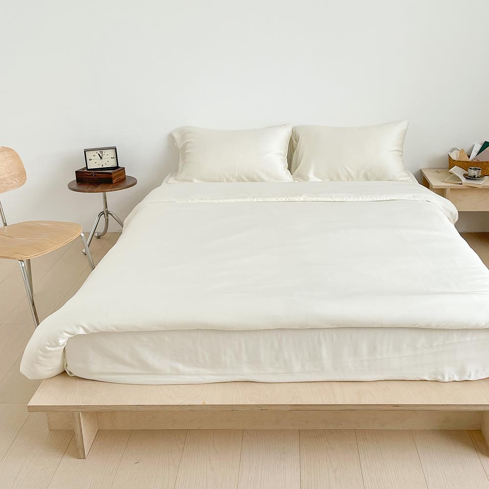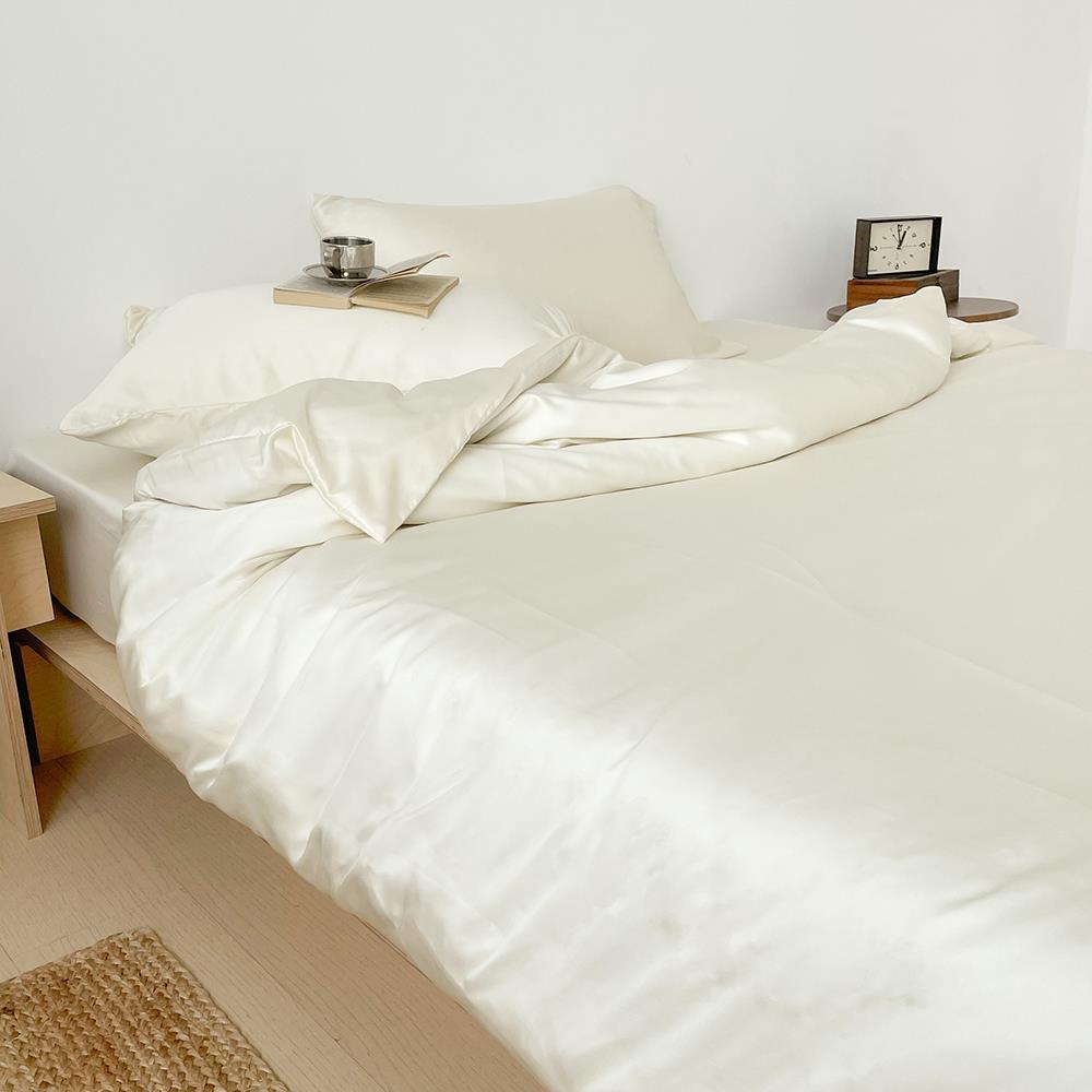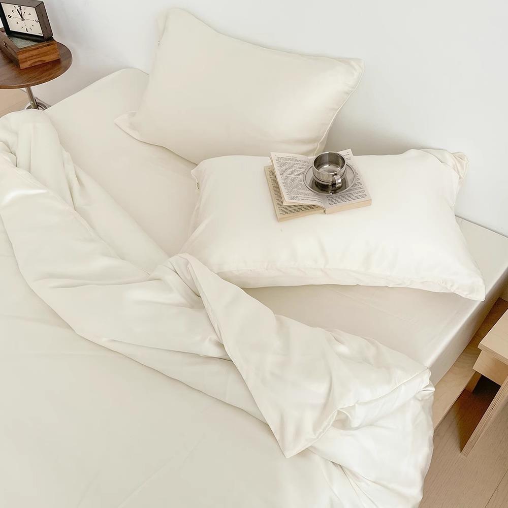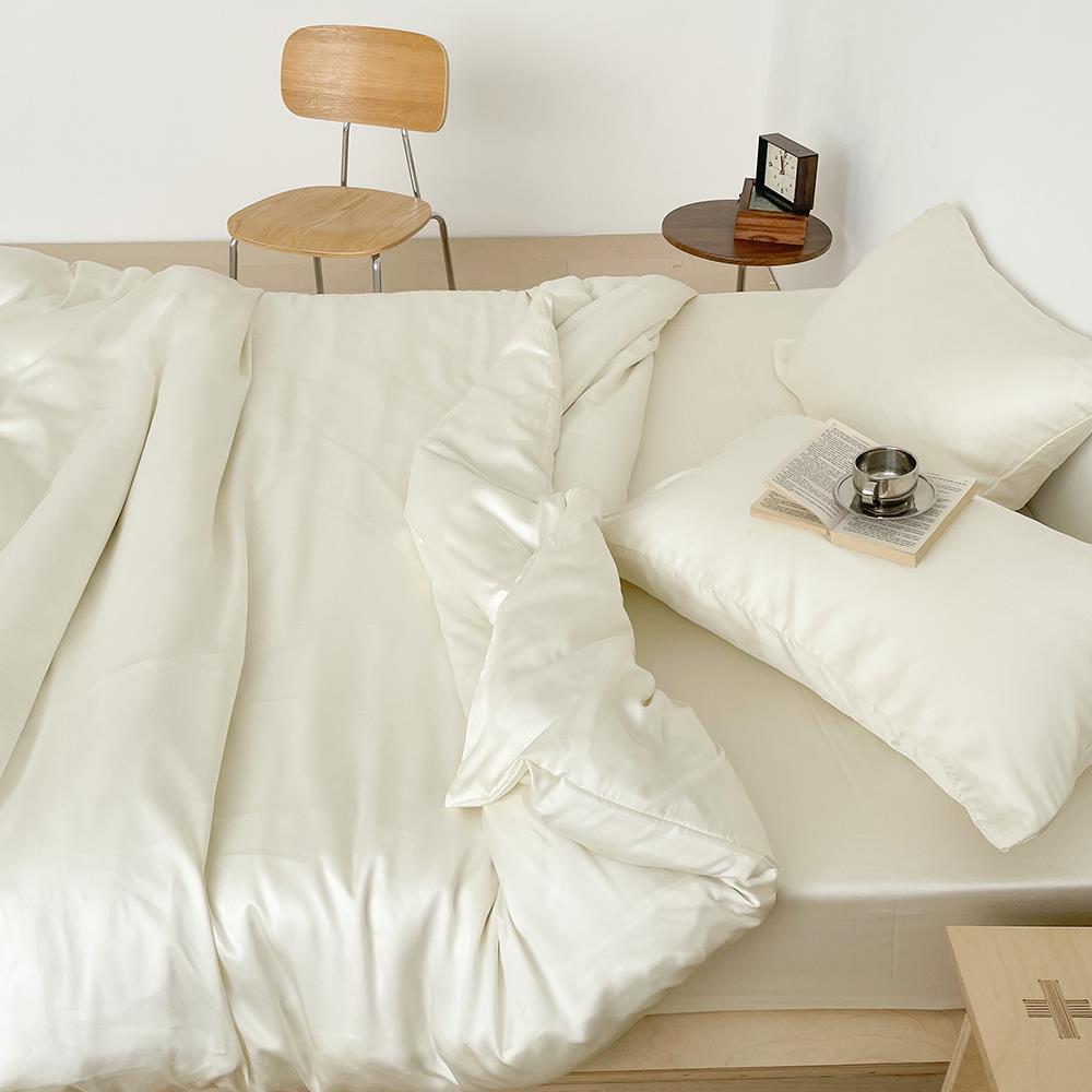 米蕊 纯色兰精天丝四件套裸感春夏凉感白色床单床笠被套丝滑清凉