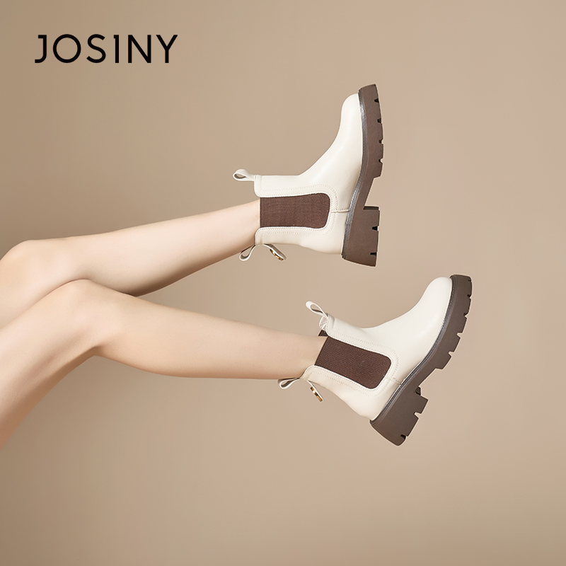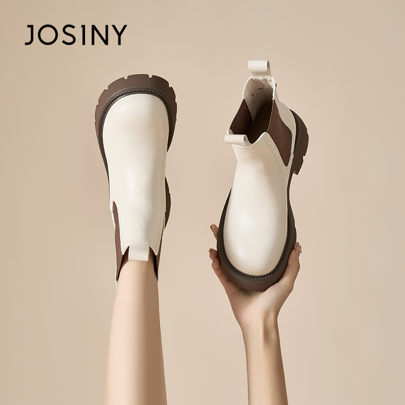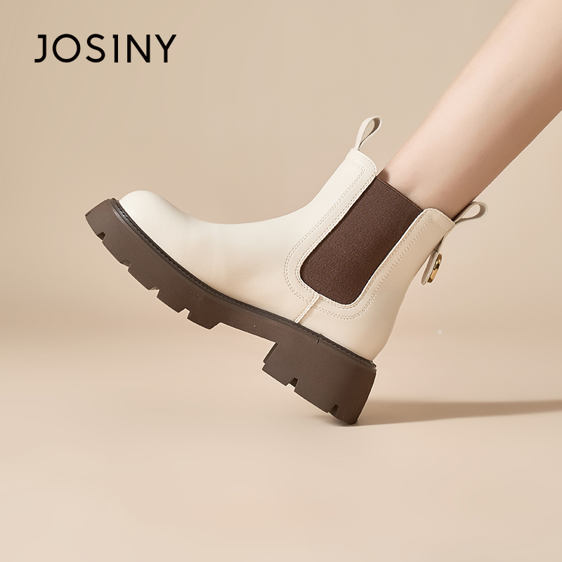 卓诗尼英伦风切尔西靴女2025秋冬新款粗跟松紧口百搭显瘦黑色短靴