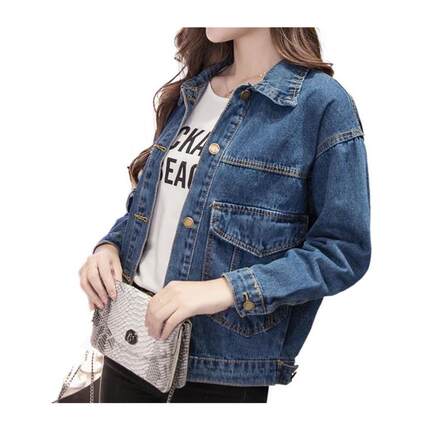 2026春秋新款韩国BF夹克牛仔上衣女港风大口袋宽松大码牛仔外套女