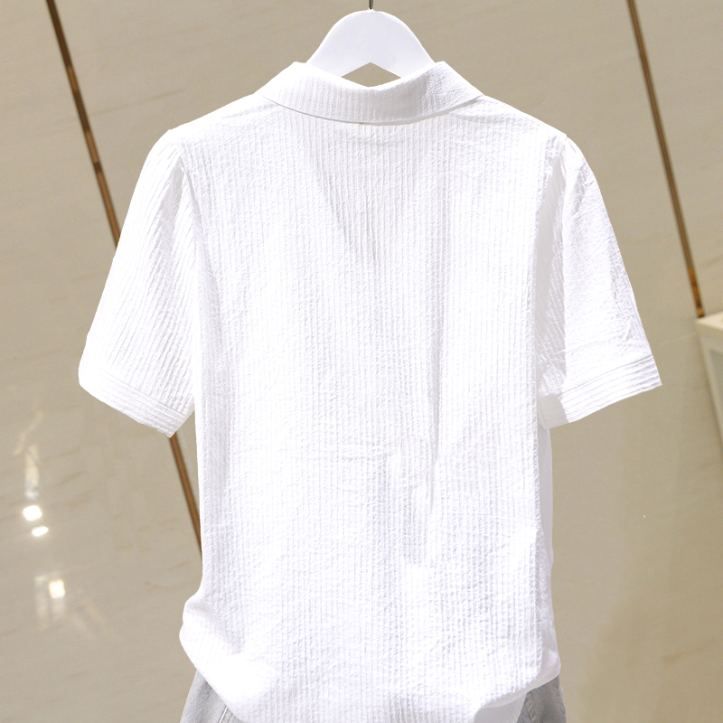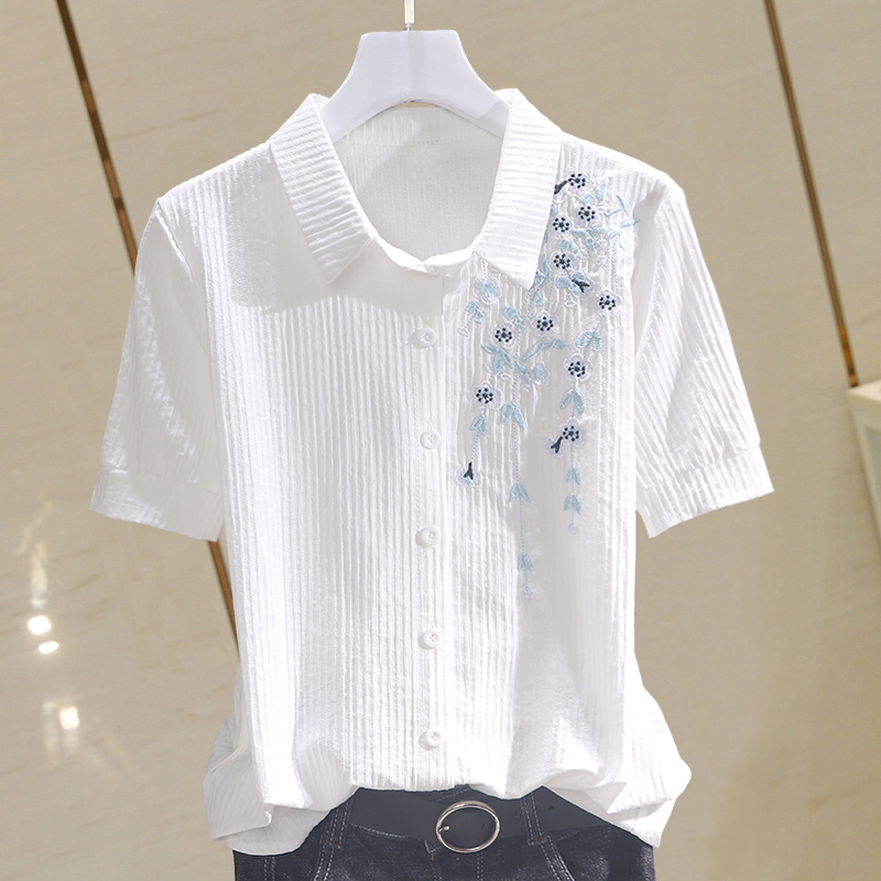 百搭短袖纯棉绣花上衣女衬衫