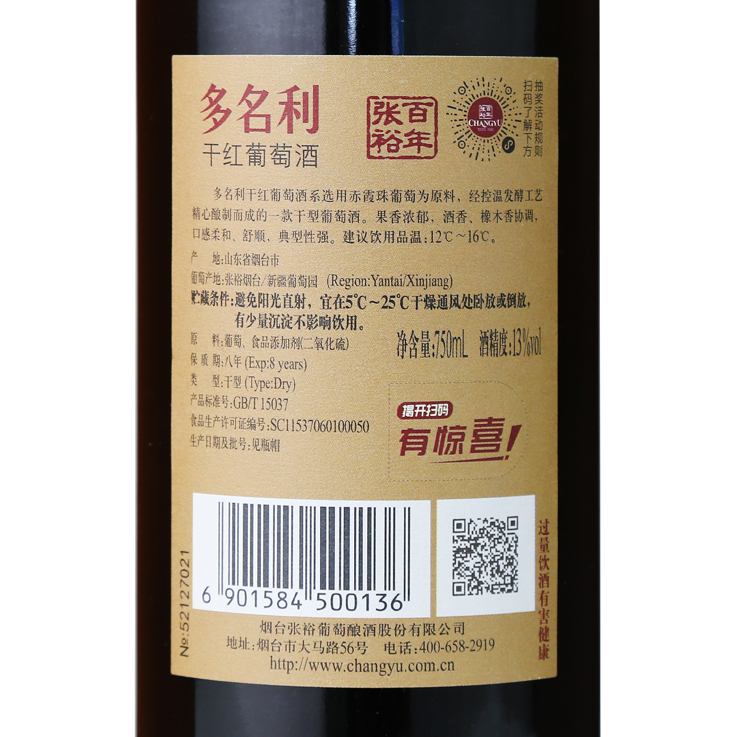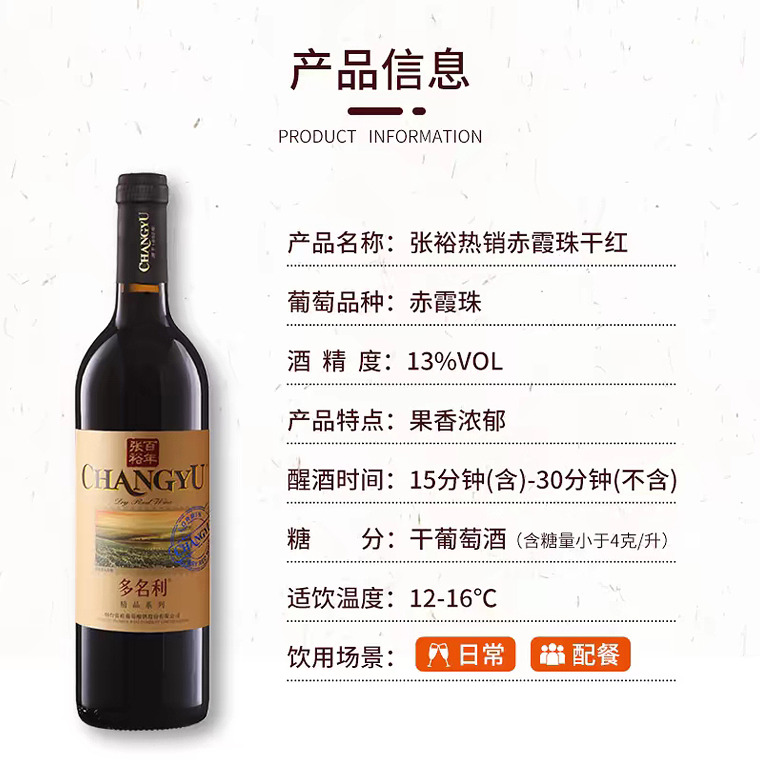 【张裕官方】赤霞珠干红葡萄酒煮热红酒整箱6瓶多名利旗舰店正品