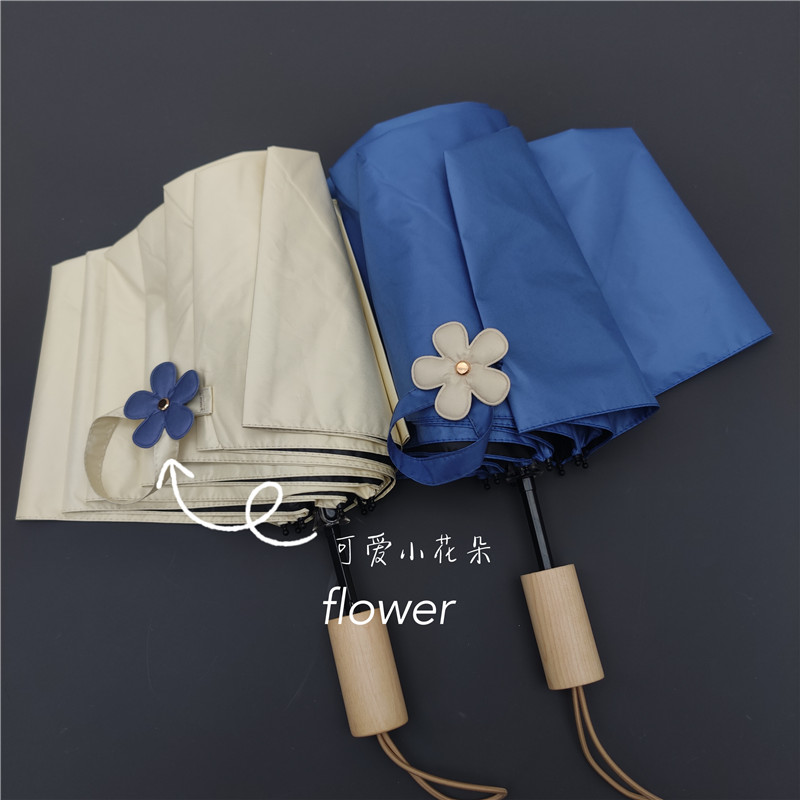 搭色绝了一把伞一朵花~韩系黑胶防晒防紫外线手动折叠木柄晴雨伞
