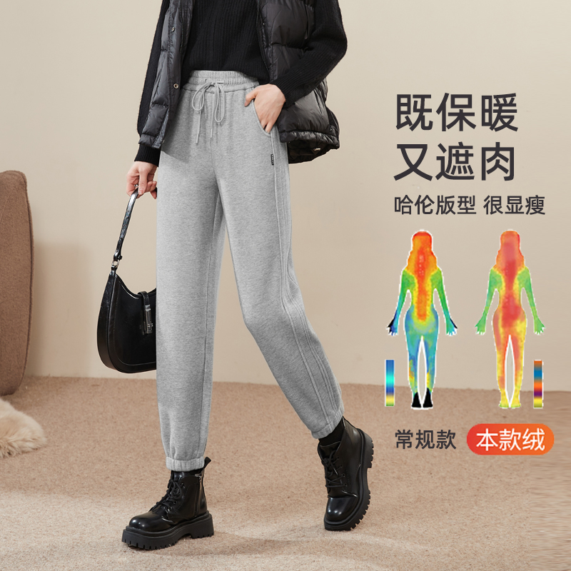 逸阳加绒加厚运动裤女2025冬季新款束脚宽松显瘦遮肉休闲高腰卫裤
