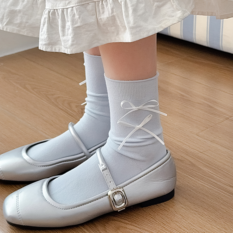 灰蓝蝴蝶结袜子女中筒袜夏季薄款