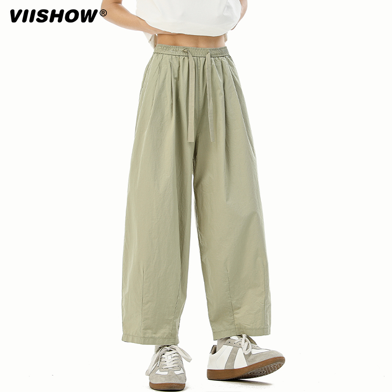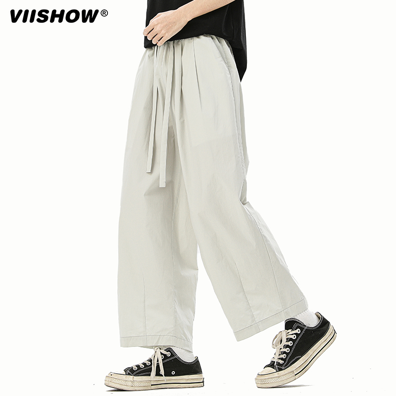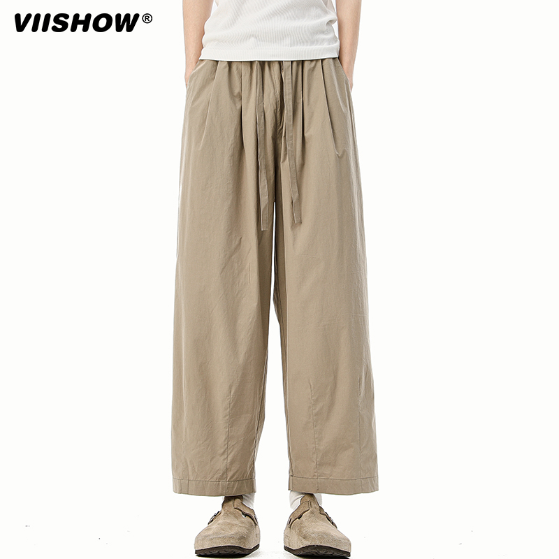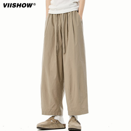 VIISHOW日系褶皱九分裤男夏季薄款宽松纯棉慵懒风百搭直筒休闲裤