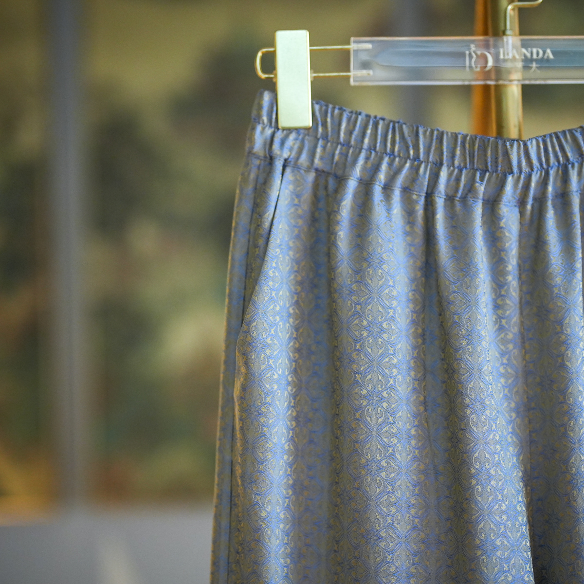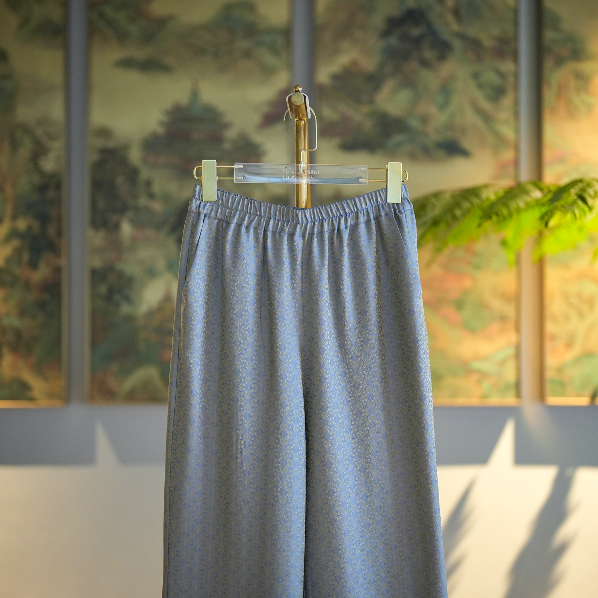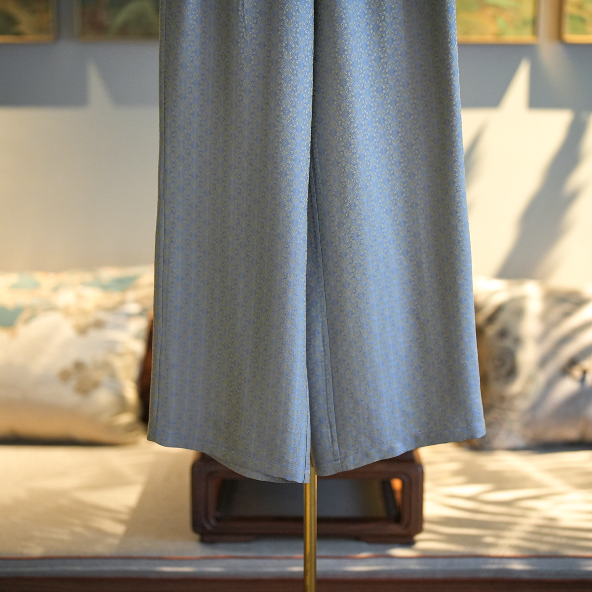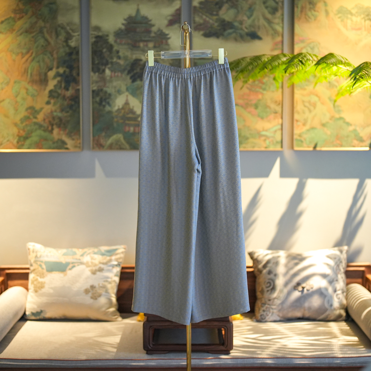 蓝大原创女装国风松紧腰直筒显瘦阔腿裤桑蚕丝休闲长裤7411