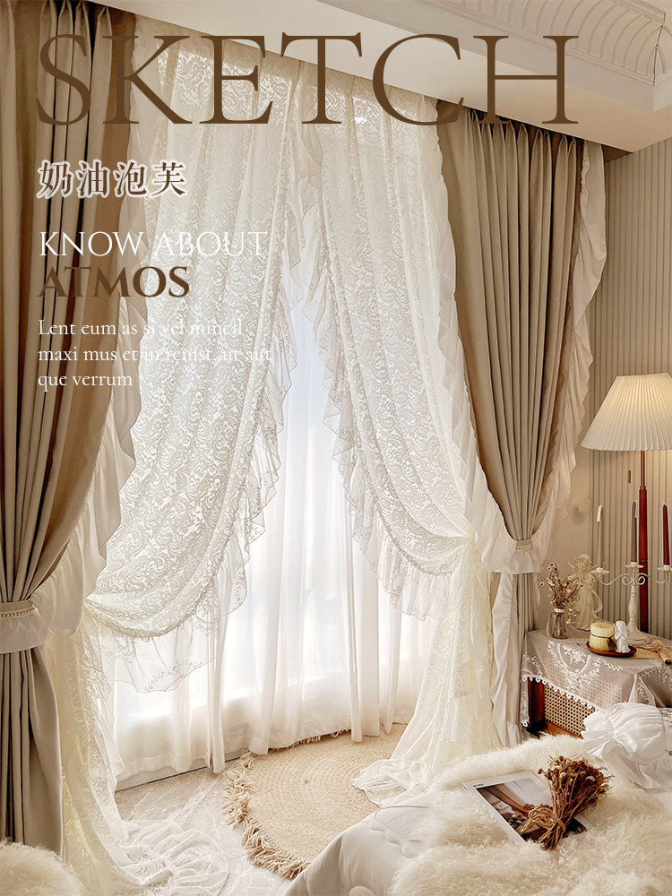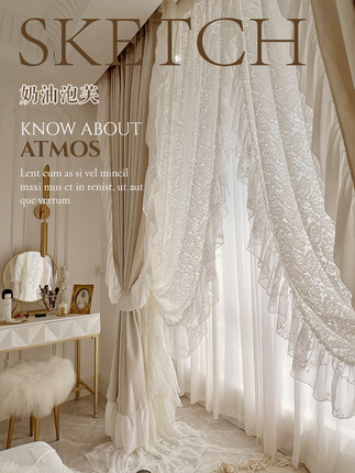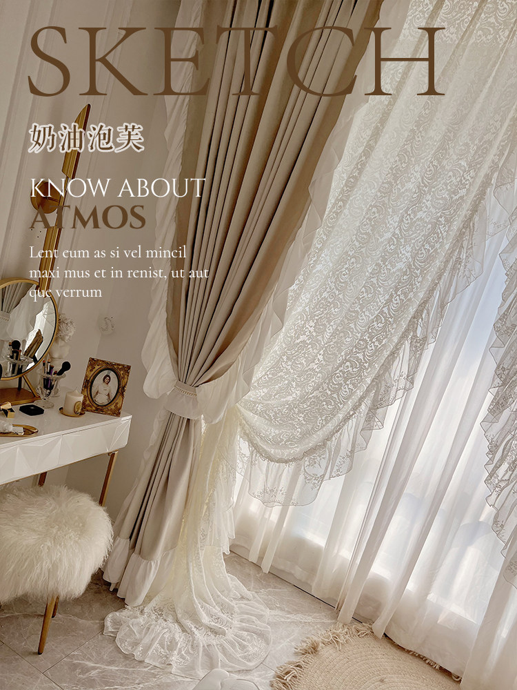 奶油泡芙 法式洛可可奶油色系蕾丝花边复古浪漫客厅卧室遮光窗帘