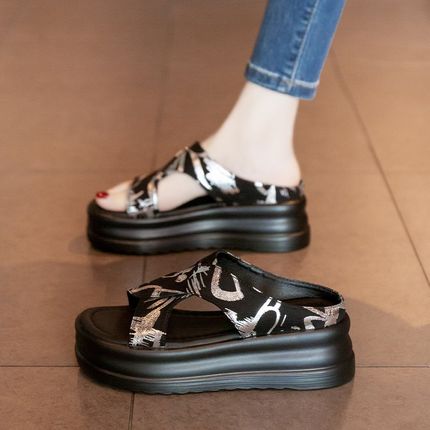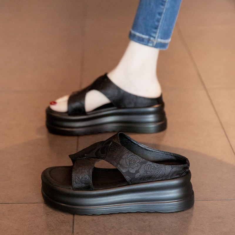 松糕厚底凉拖鞋女2025新款夏季外穿配裙子高级感海V边度假沙滩凉