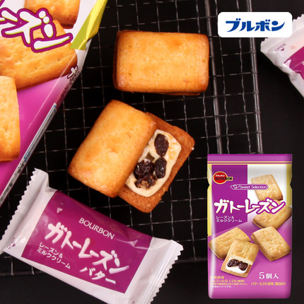 日本进口bourbon布尔本奶油葡萄夹心饼干朗姆酒渍提子曲奇下午茶
