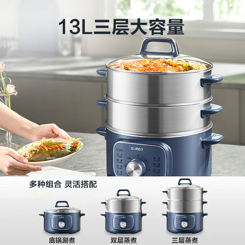 苏泊尔电蒸锅家用煮锅一体多功能三层蒸煮炖多层一体电热煮火锅