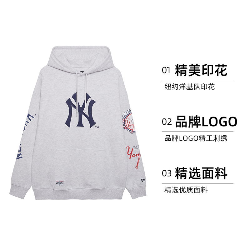 【自营】New Era纽亦华春季MLB连帽卫衣logo印花NY运动重磅街头潮