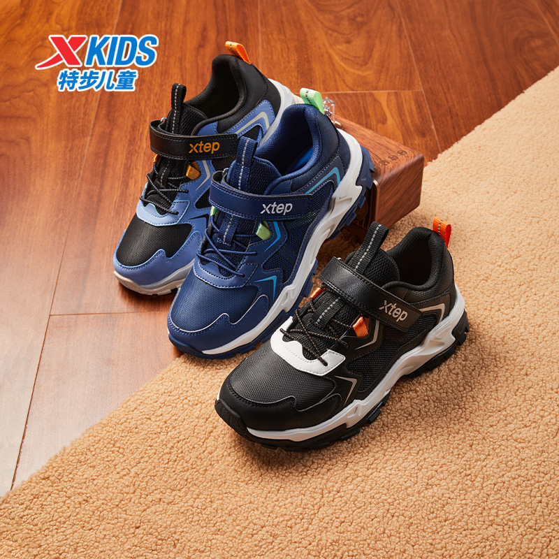特步童鞋秋冬新款儿童运动鞋男童中大童轻便耐磨百搭魔术贴休闲鞋