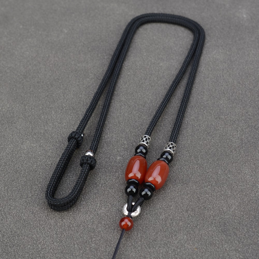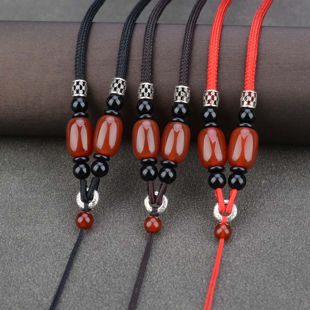 高档天然红玛瑙手编项链挂绳翡翠玉石吊坠绳子粗款挂坠配绳挂件绳