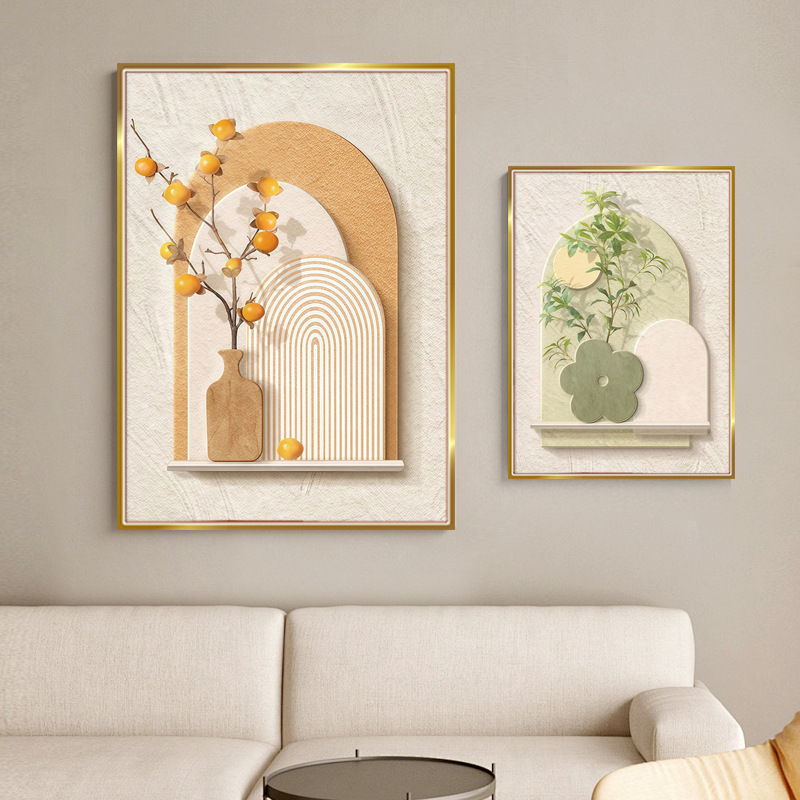 原木奶油风餐厅装饰画抽象花卉餐桌背景墙挂画高级感卧室床头壁画