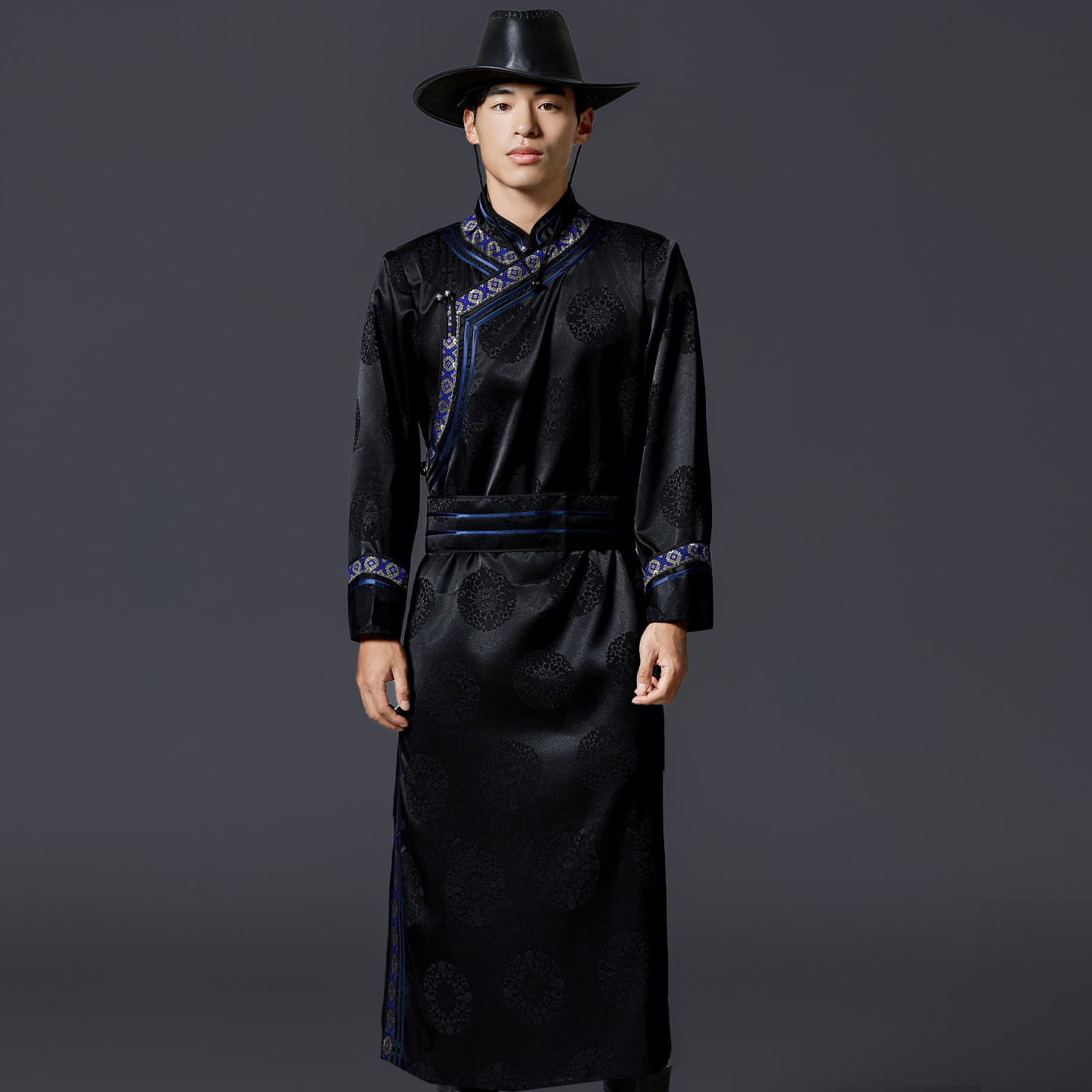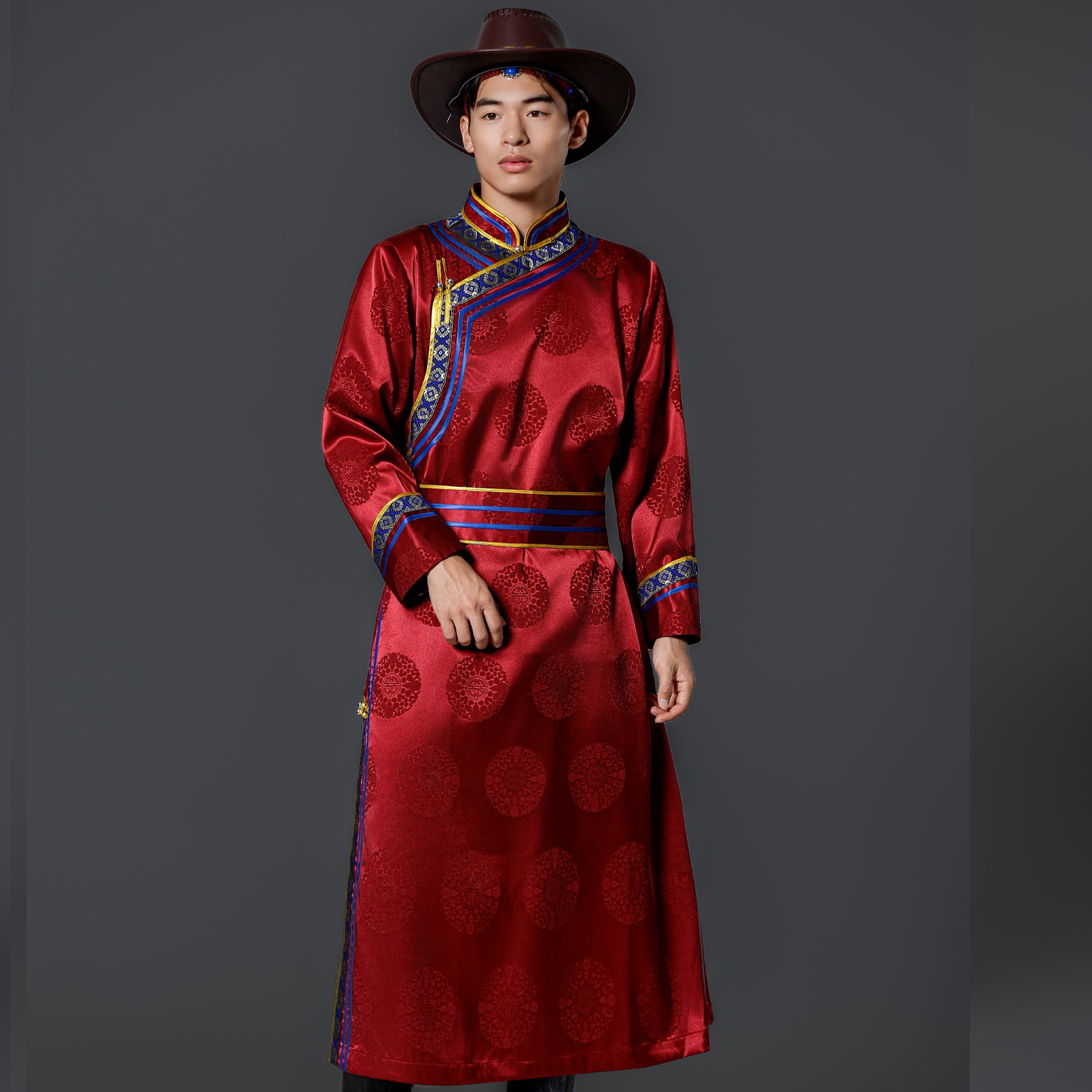 新款蒙古袍男日常生活装蒙古服装表演演出服装蒙古族男装长款