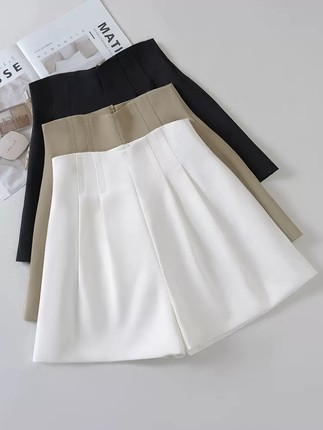 a字短裤夏季女高腰2026新款白色阔腿裤宽松显瘦卡其西装休闲裤子