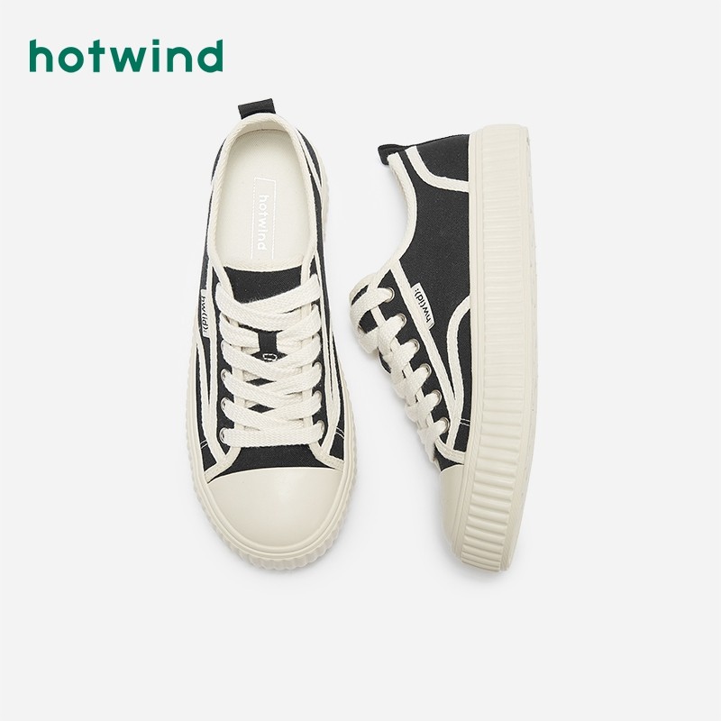 热风秋季新款男士时尚拼色舒适休闲鞋圆头系带学院风帆布鞋