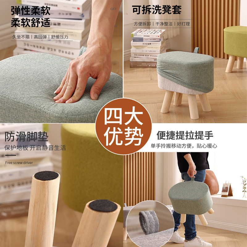 实木小椅子家用小板凳茶几凳子矮凳简约布艺沙发凳客厅门口换鞋凳