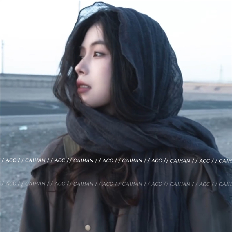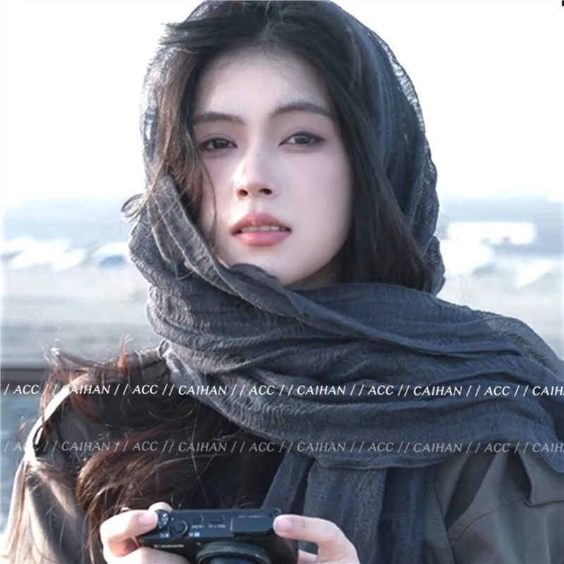 服饰多件套!风起伦敦~复古文艺褶皱围巾秋冬旅游拍照纱巾保暖围