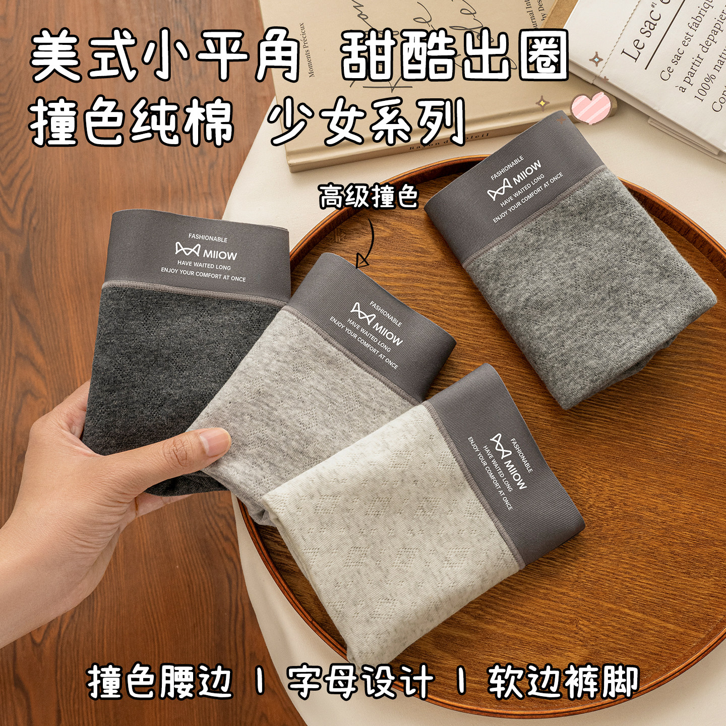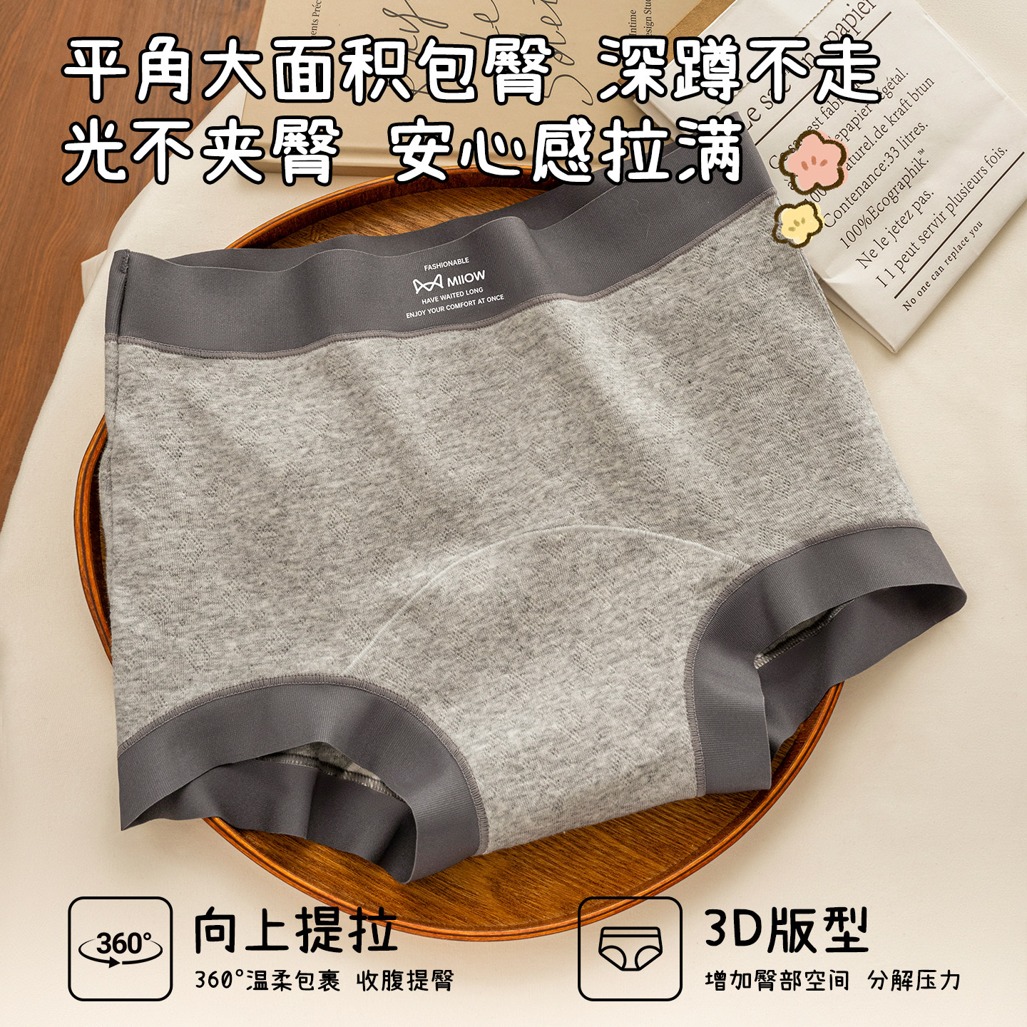 猫人平角内裤女纯棉磨毛抗菌2025新款加长裆中腰无痕少女四角短裤
