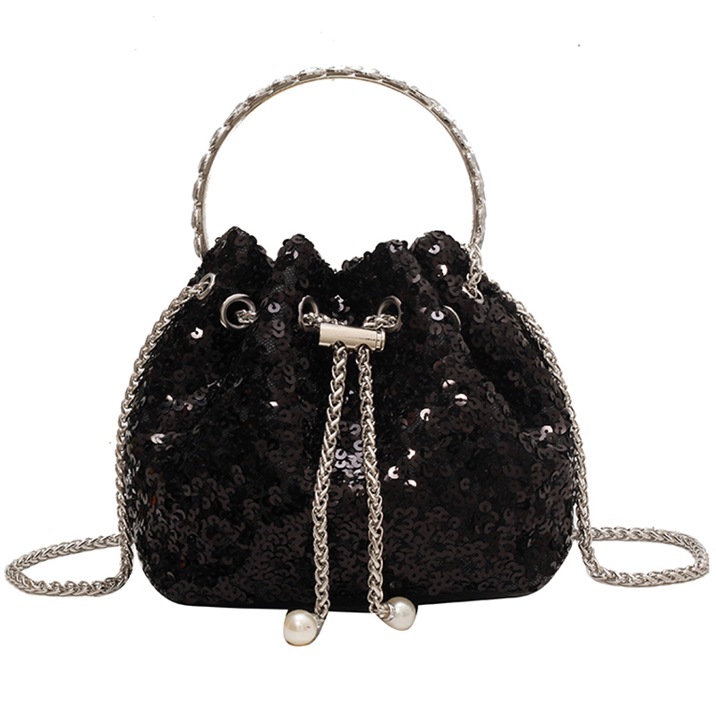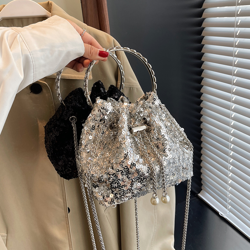 今年流行小众设计亮片包包2025新款女包夏天百搭链条斜挎包水桶包