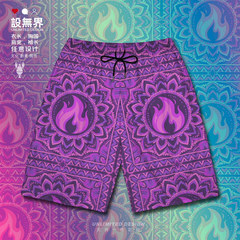印度热门特色曼陀罗花纹纹理设计大码短裤男装女装潮0018设 无界