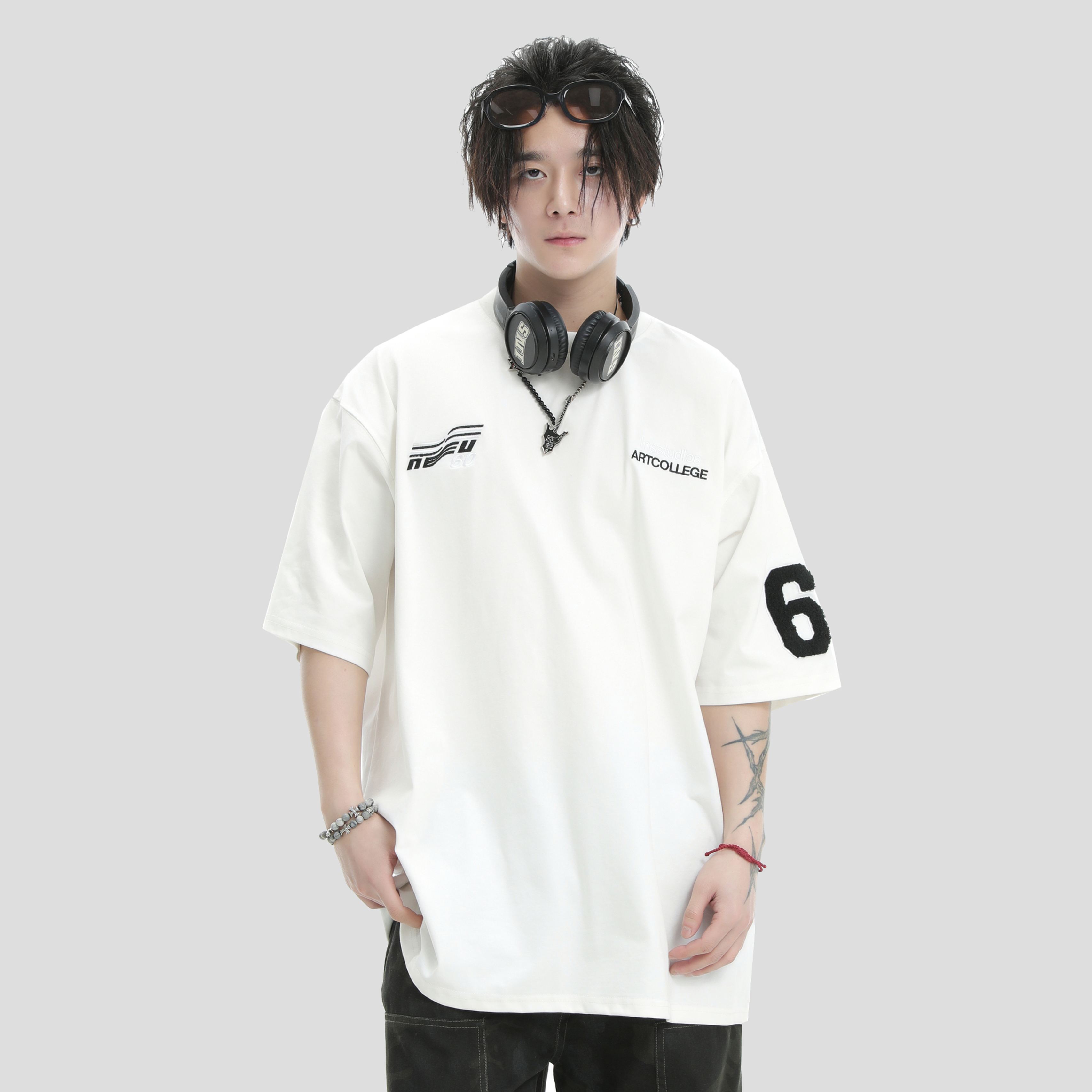 INSstudios复古赛车LOGO刺绣短袖