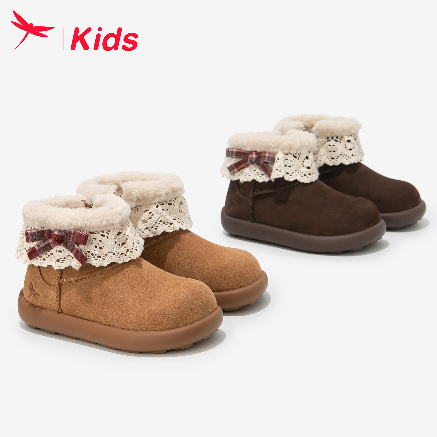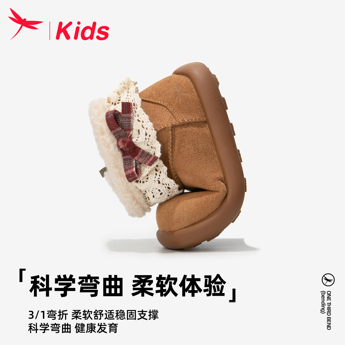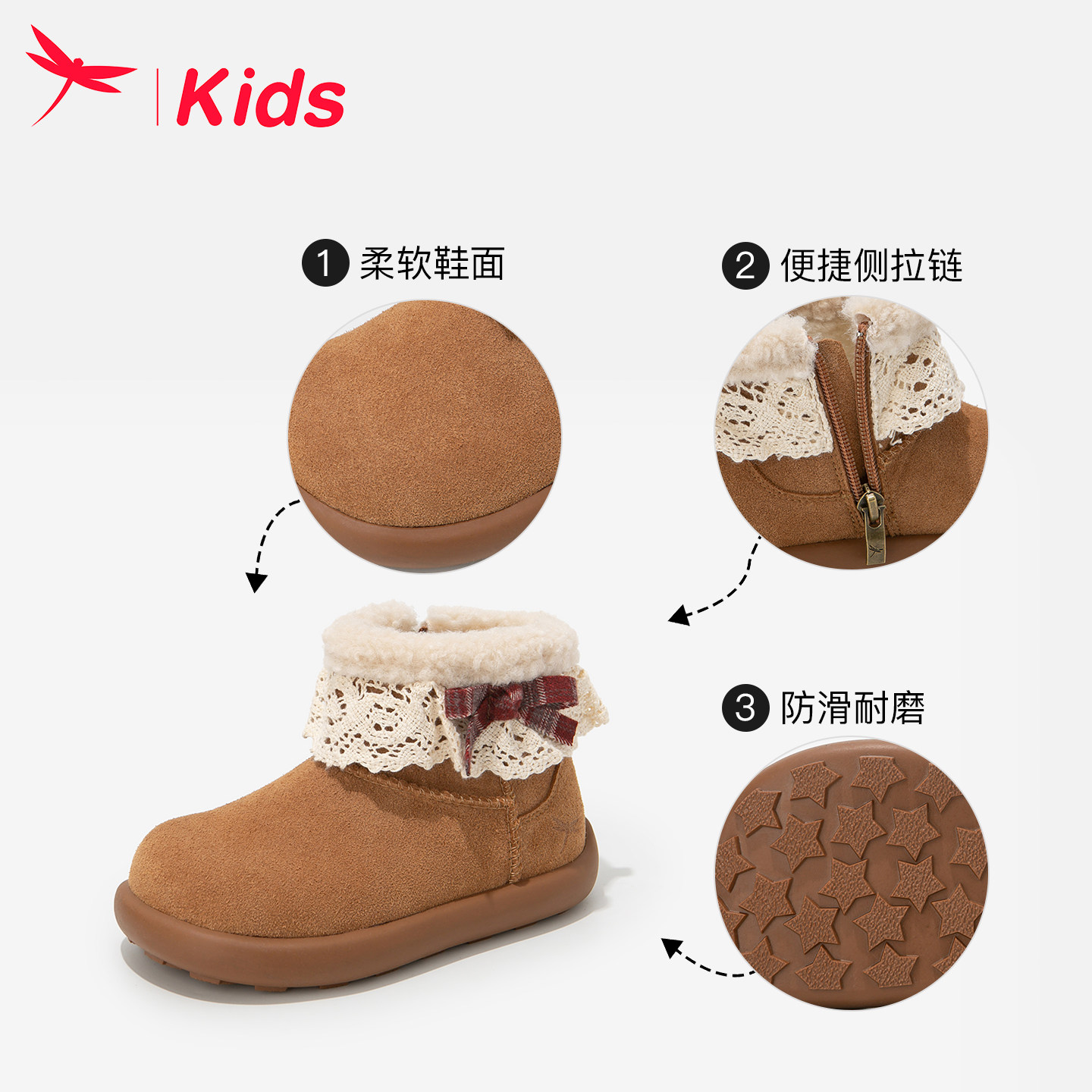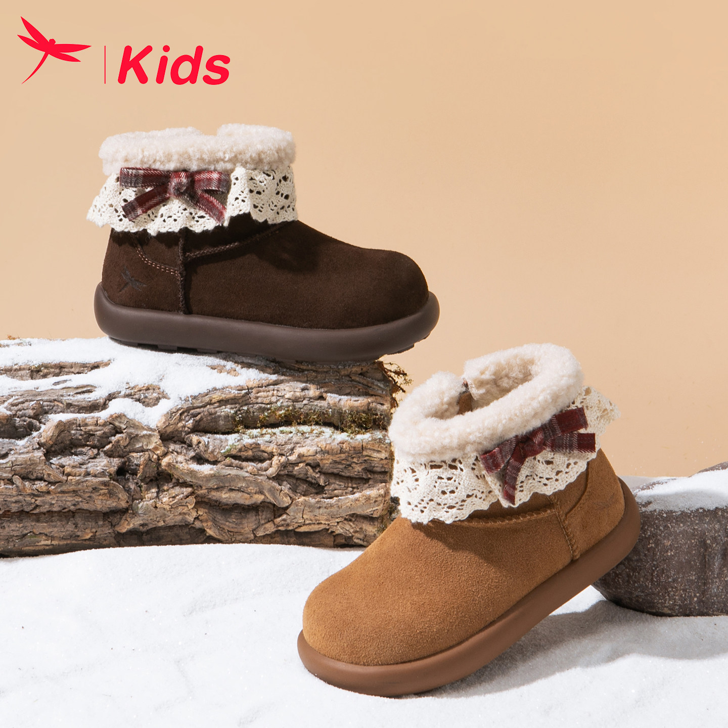 红蜻蜓女童雪地靴儿童二棉鞋子2025新款冬季加绒保暖女宝勃肯冬靴
