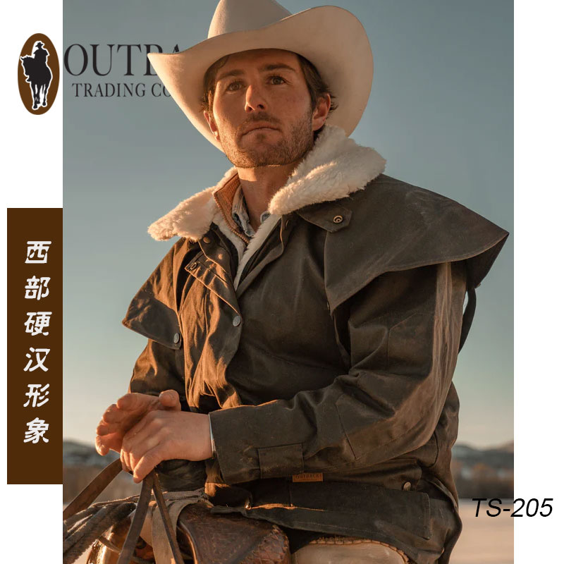 美国进口OUTBACK男女短款油布风衣西部牛仔骑马骑士防风防水保暖
