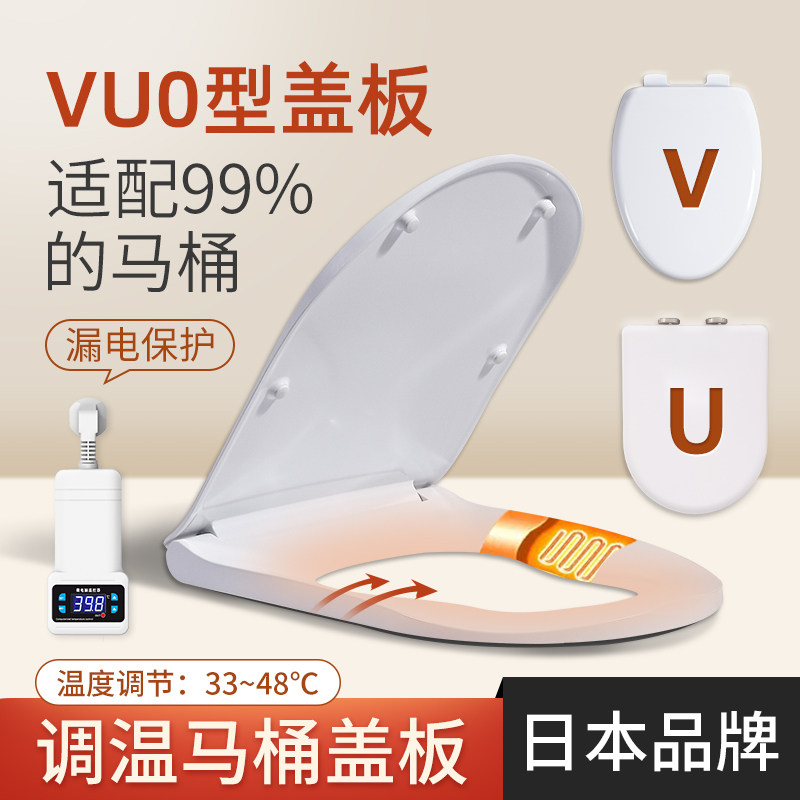 方型电加热马桶盖家通用老式V型大U形智能恒温坐便盖马桶坐盖座圈