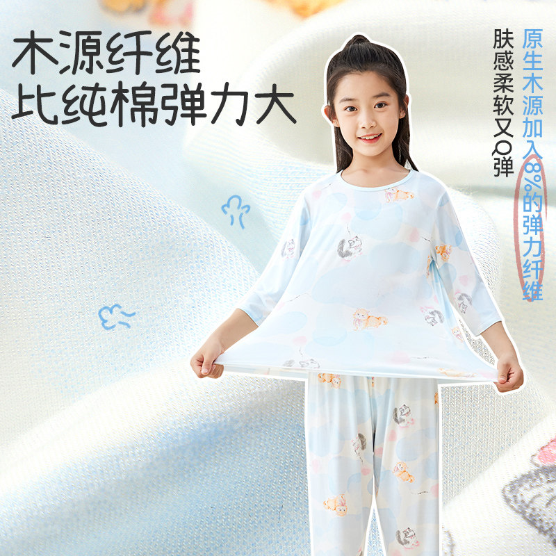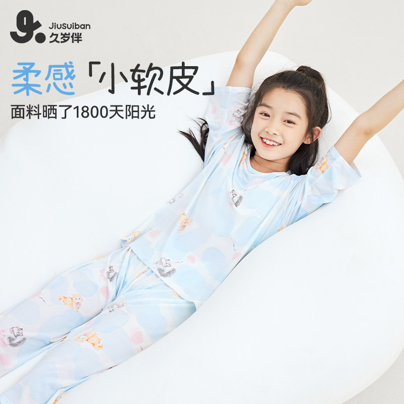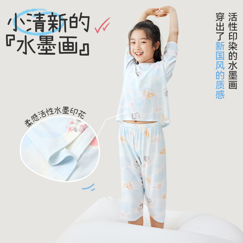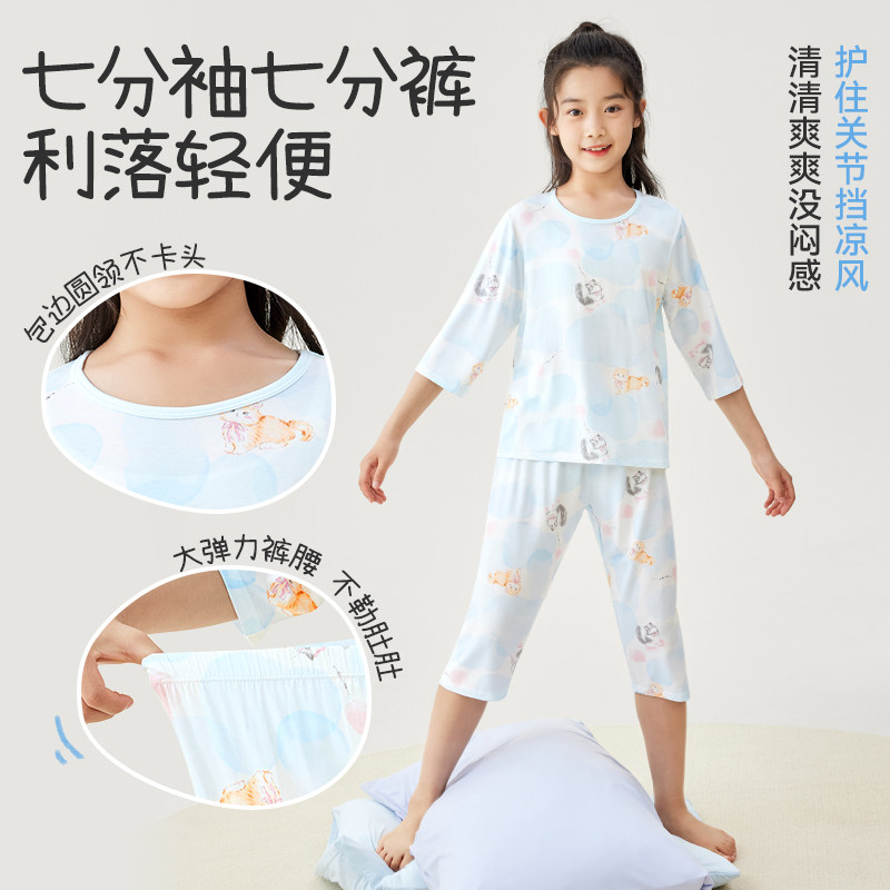 久岁伴儿童睡衣套装女童春秋长袖家居服中大童宝宝七分秋衣秋裤