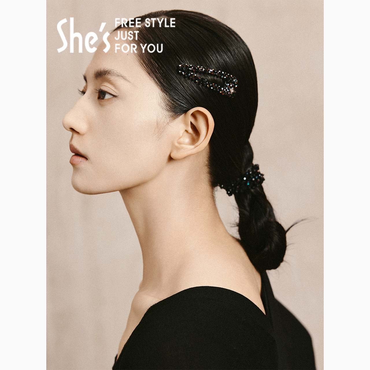 shes耀我宣言手工编织工艺水晶精致小边夹刘海BB夹侧边高级感发夹