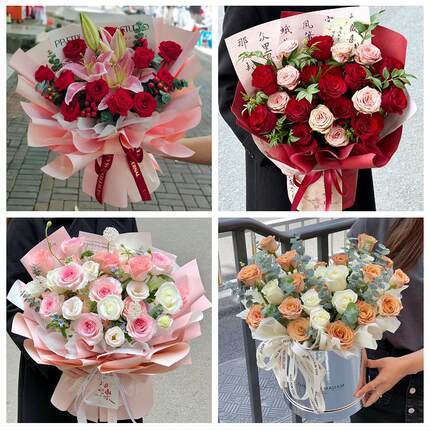 天津市宝坻区大钟庄新安霍各庄鲜花店同城配送女神节玫瑰花束礼盒