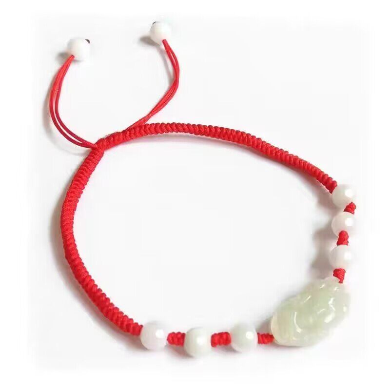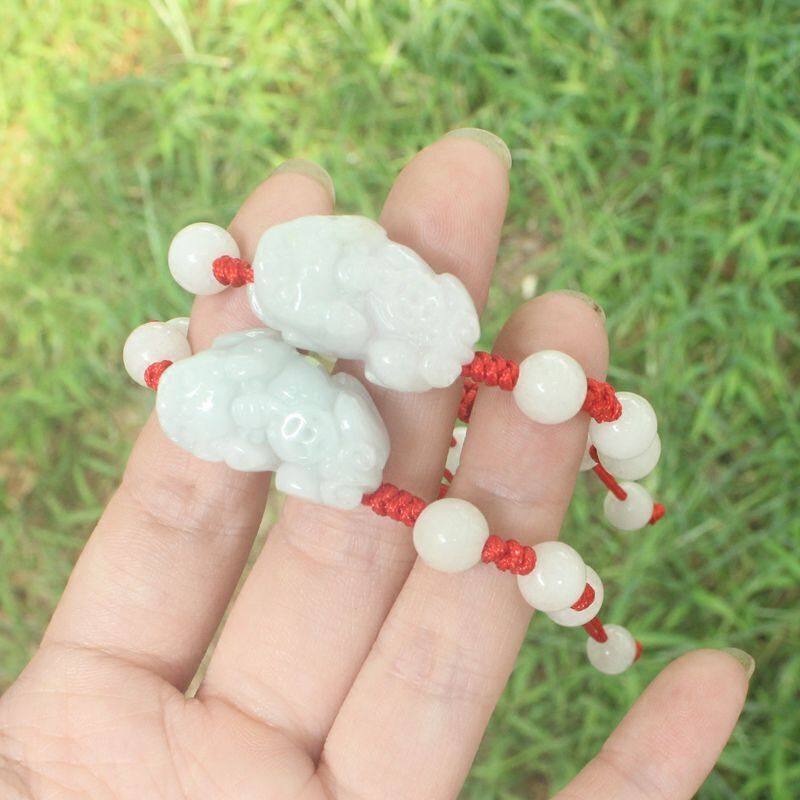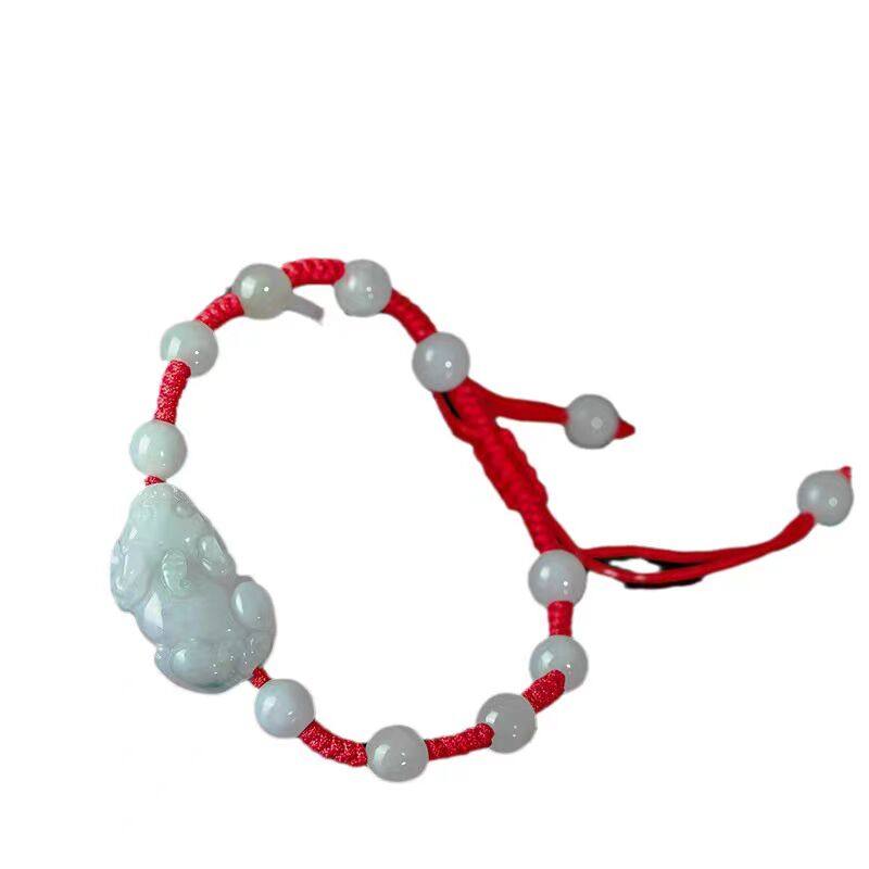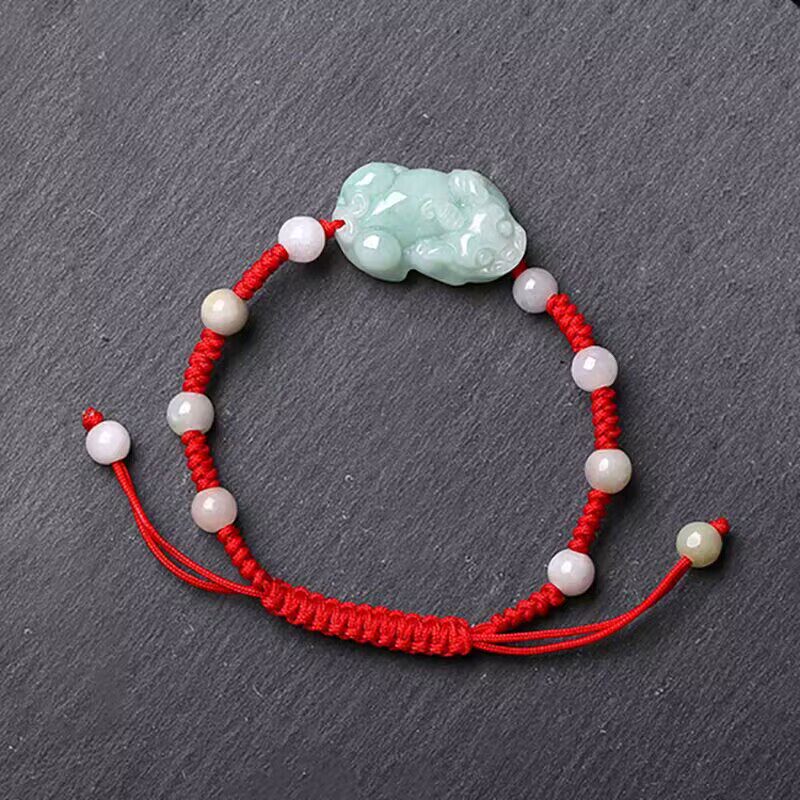 祥祯福 翡翠貔貅手串男女可调节天然冰糯种本命年红绳玉石手链