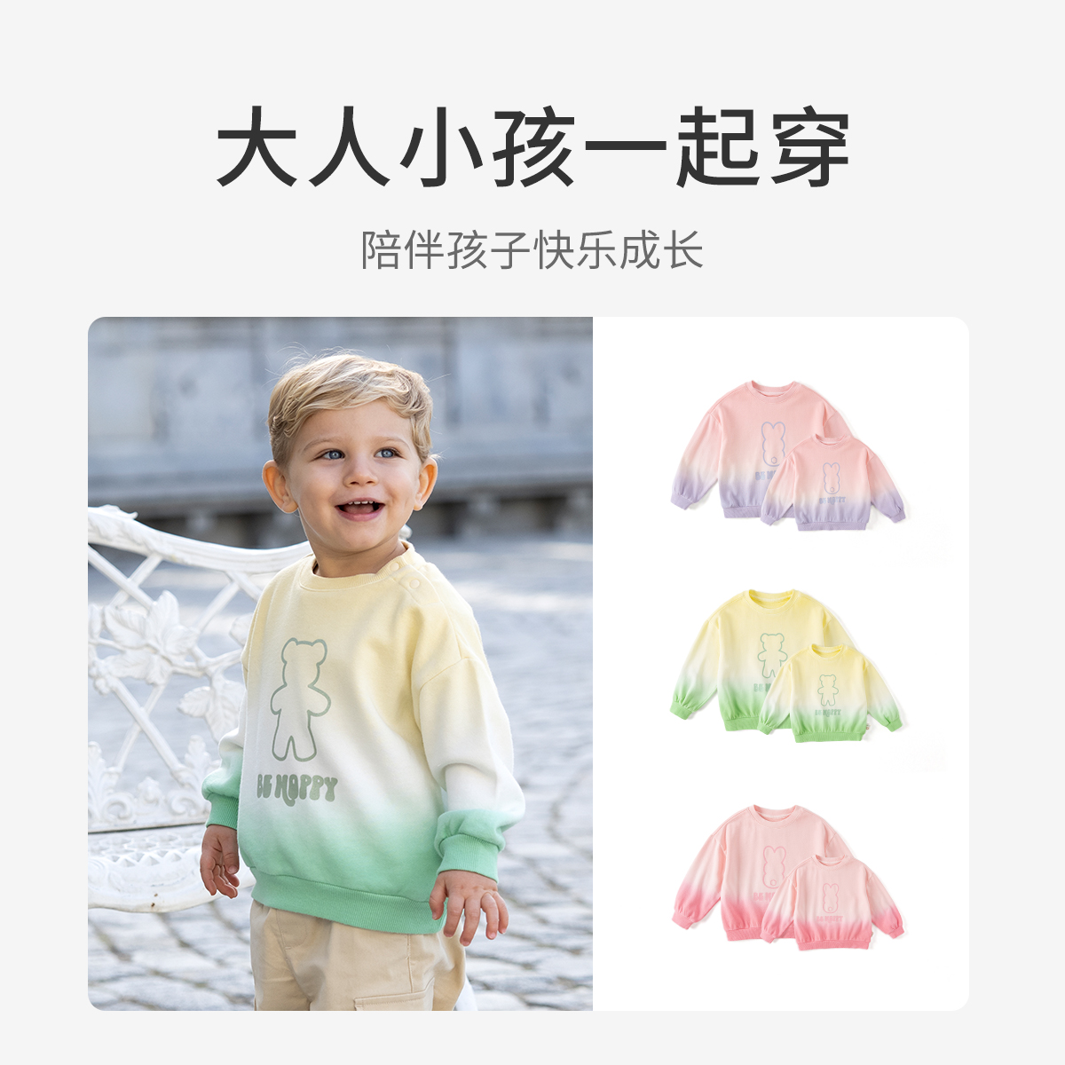 戴维贝拉女童卫衣儿童粉色上衣男童宝宝秋季可爱渐变色亲子装童装