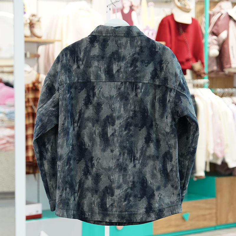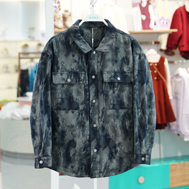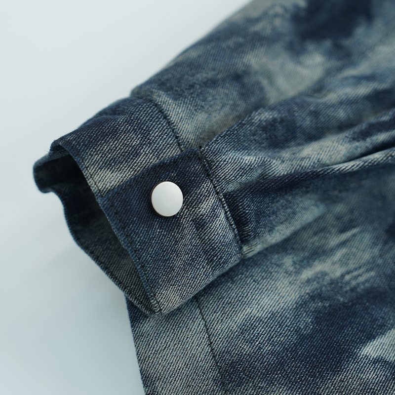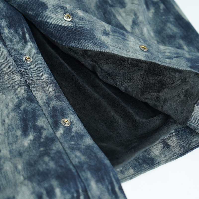 男装牛仔外套加绒加厚潮流迷彩痞帅一体绒韩版渐变牛仔夹克衬衫冬