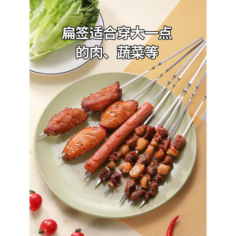 批烧烤用具不锈钢扁签加厚刚签烧烤签子烤针羊肉串铁签子烤肉签串
