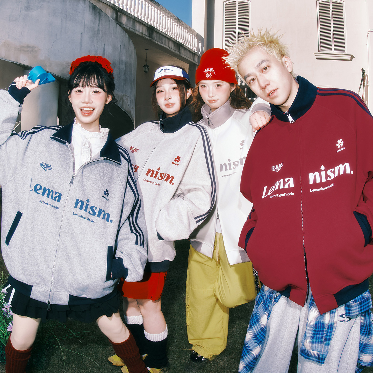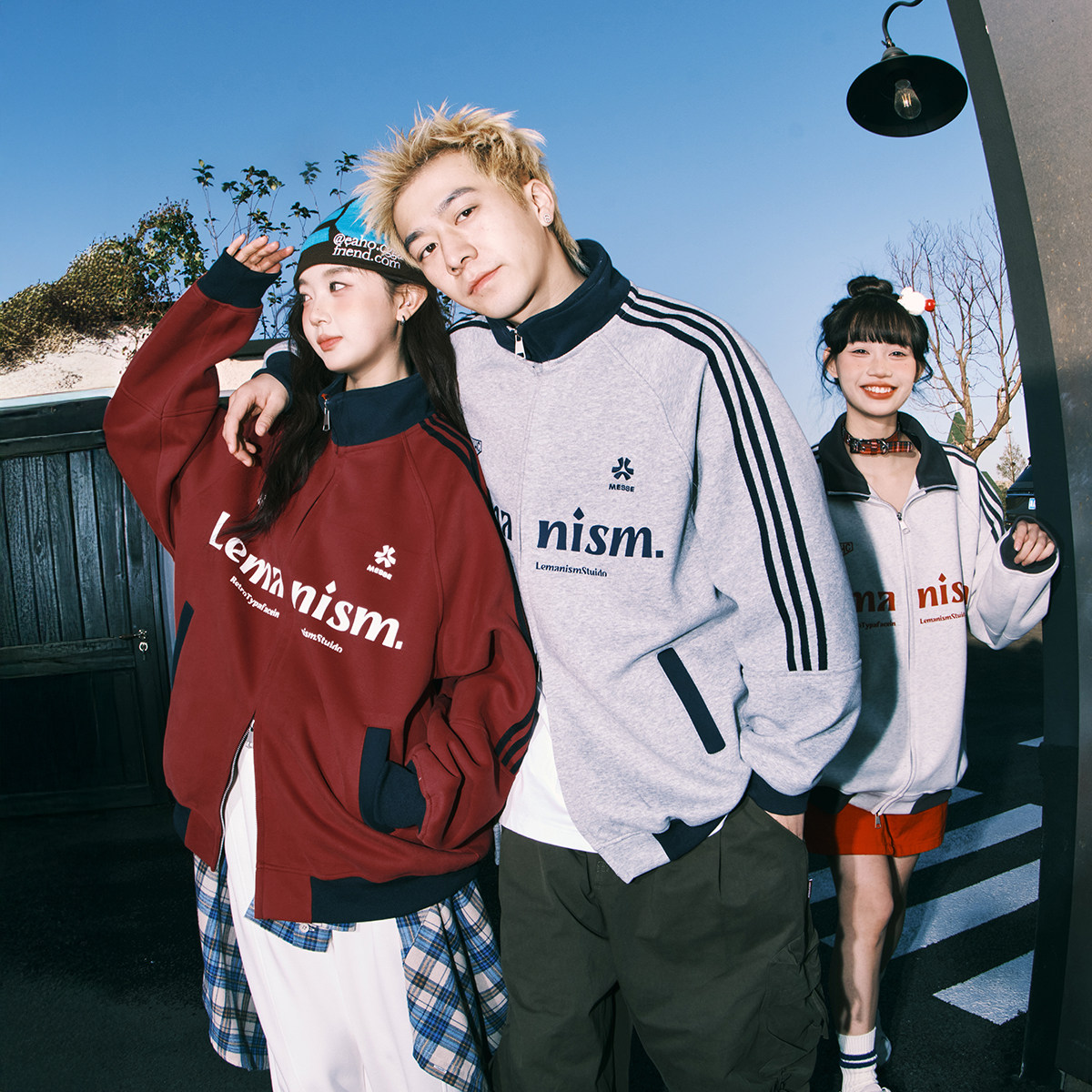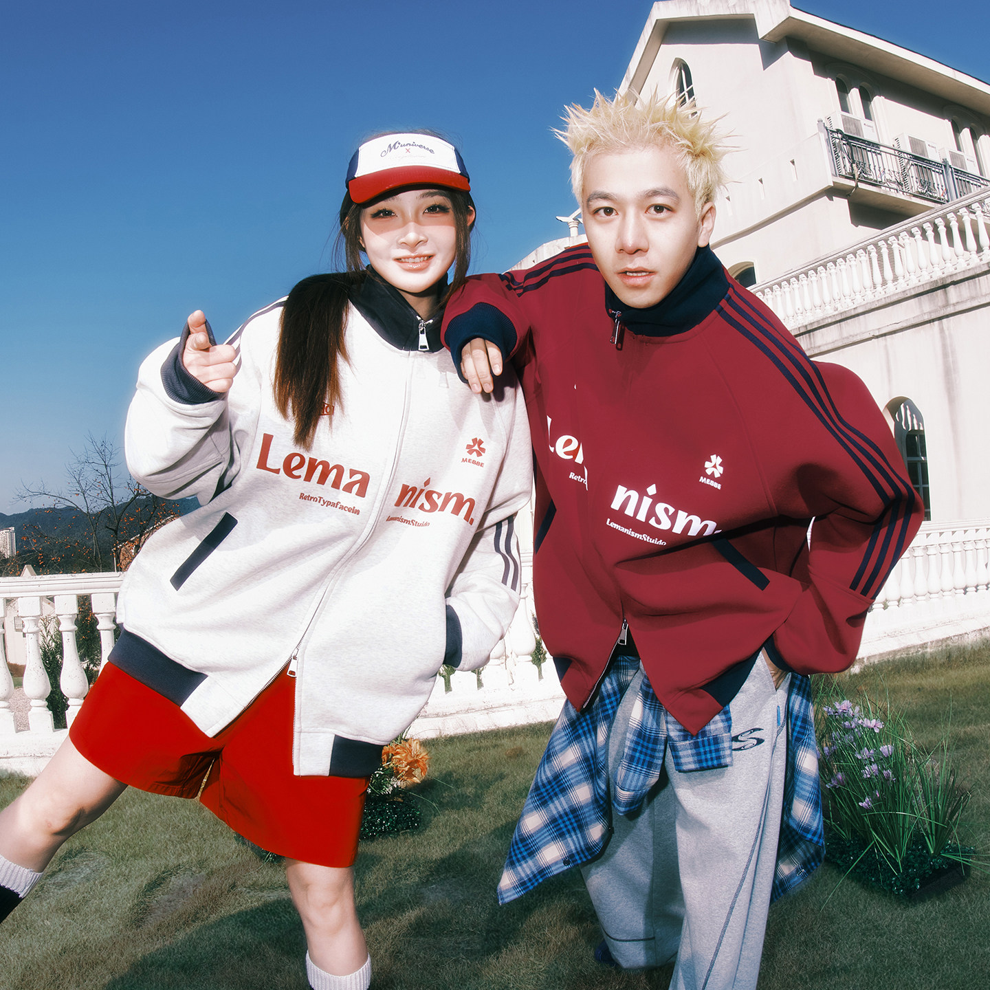 lemanism棒球服红色外套男立领春秋情侣款美式运动夹克女卫衣外套