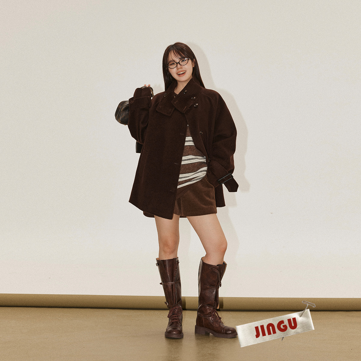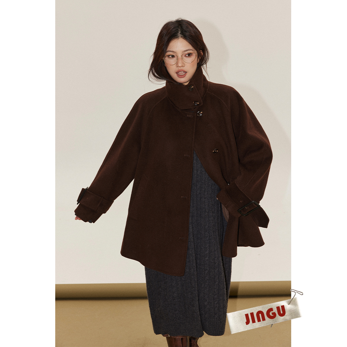 晶咕白标DADATATA大翻领气质双面呢大衣女冬季新款大码毛呢外套