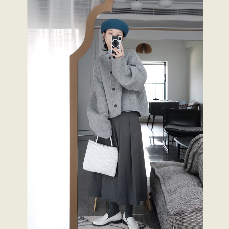 法式高级感灰色圆领毛呢外套女秋冬季小个子休闲短款呢子上衣