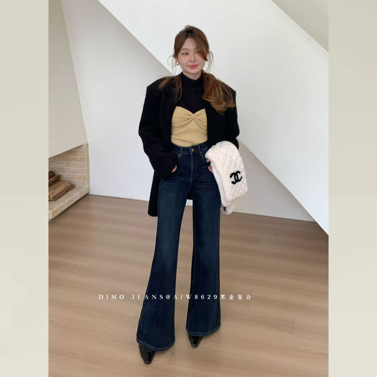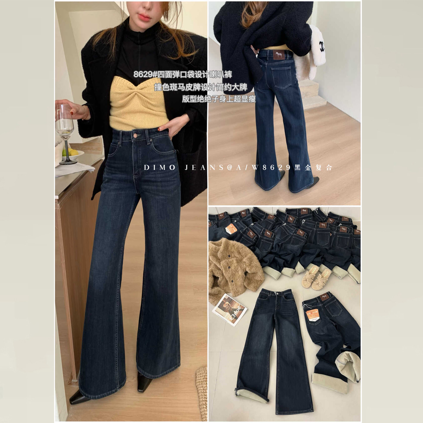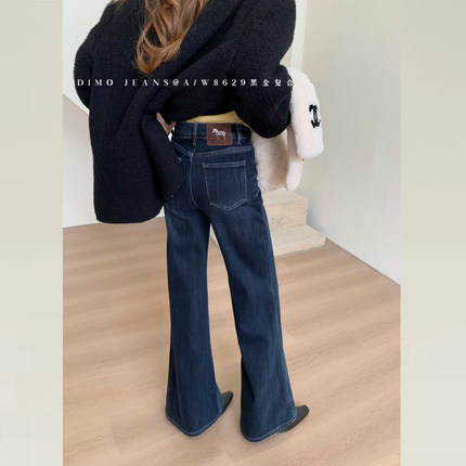 DIMO冬款黑色加绒牛仔裤女2025新款版型超好看的裤子不贴腿微喇裤