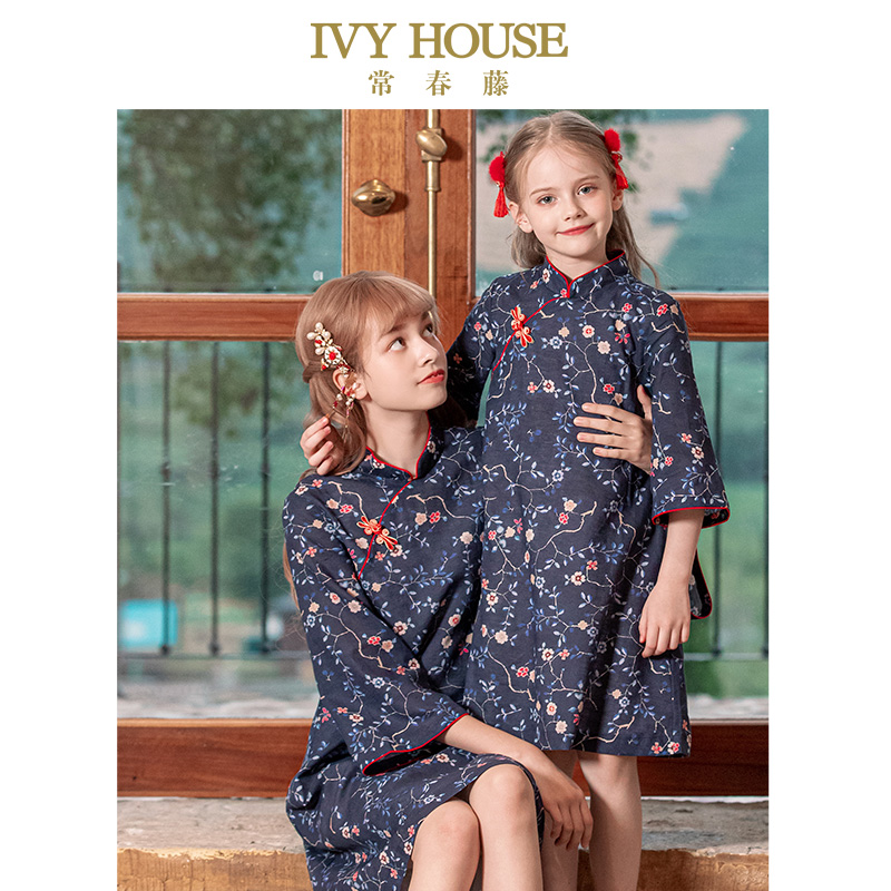 IVY HOUSE常春藤童装女童秋季新款 古风连衣裙中式旗袍领立领盘扣
