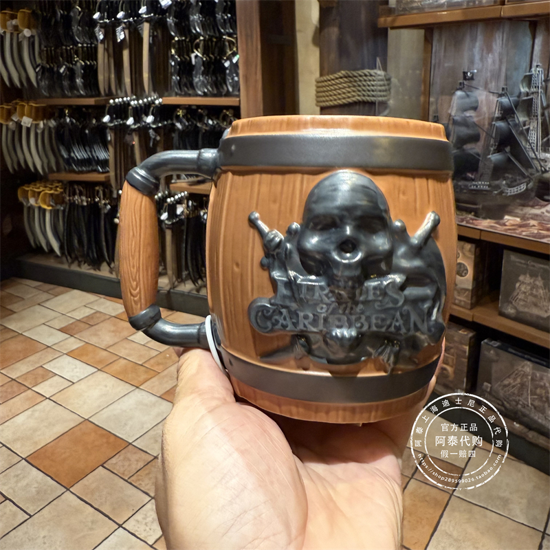 上海迪士尼代购加勒比海盗骷髅标识海盗酒桶造型马克杯625ml水杯