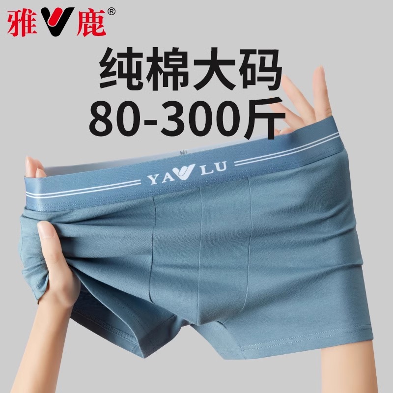 雅鹿男士内裤纯棉男生男款加大码加肥四角短裤夏季青少年平角裤衩