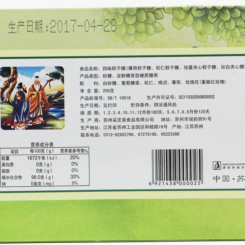 苏州土特产采芝斋苏式糖果零食四味粽子糖盒装