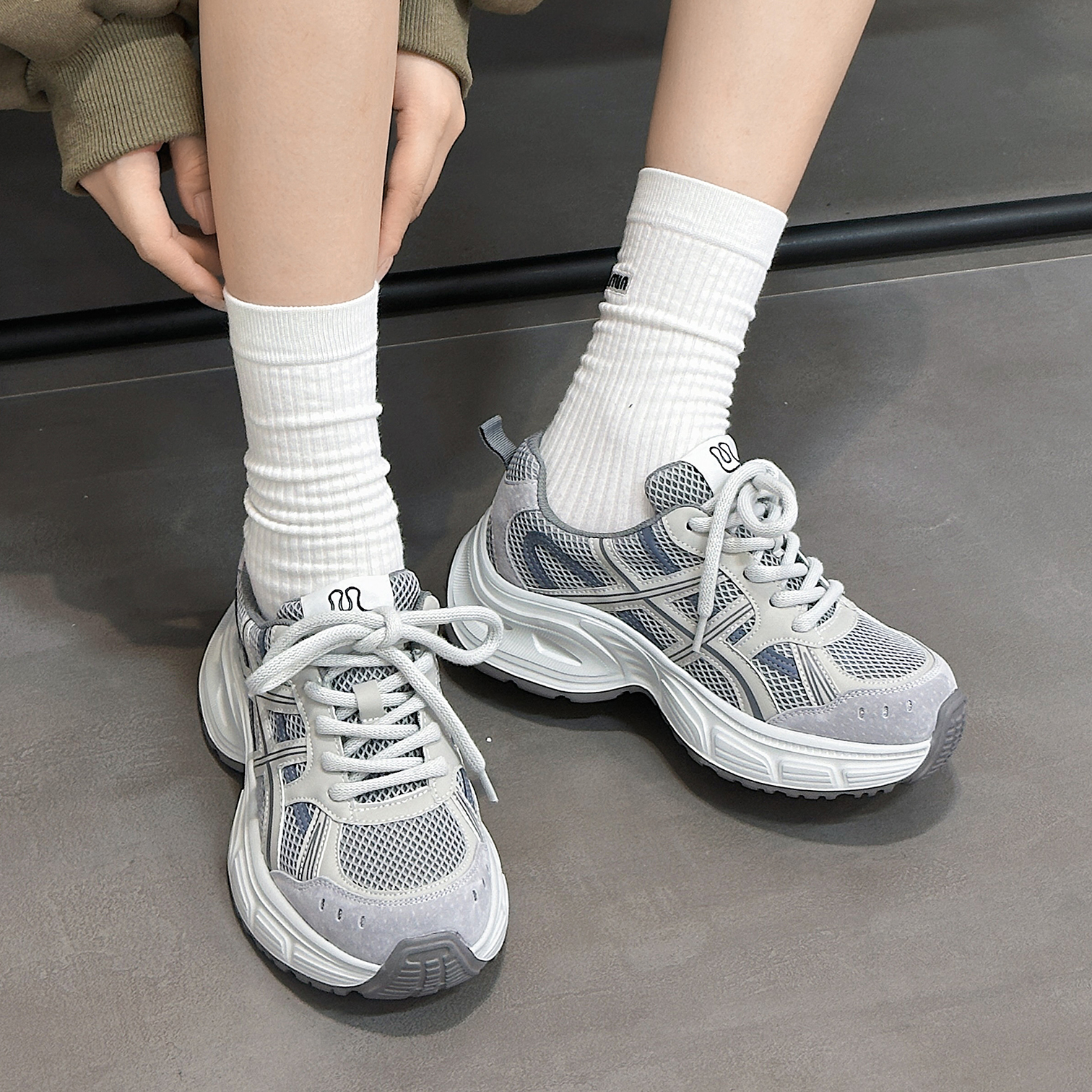 透气网面老爹鞋女2025新款秋季百搭显脚小厚底增高休闲运动鞋潮流